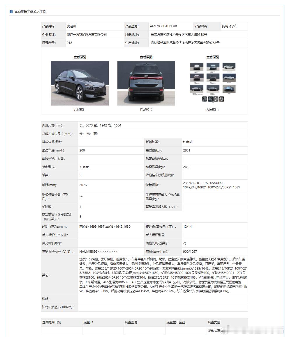工信部申报400批|一汽奥迪A6Le-tron申报图发布车身长宽高