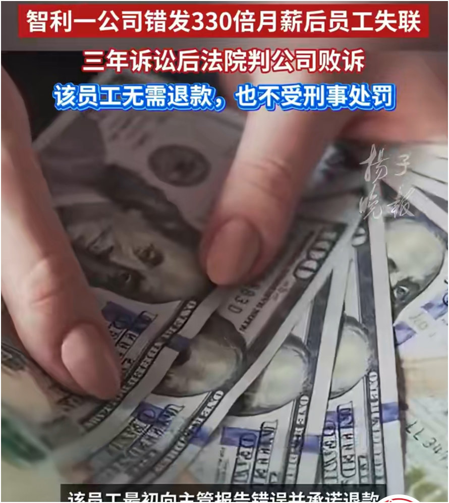 智利公司错发123万工资员工被判不退款打工人白日梦系列~
