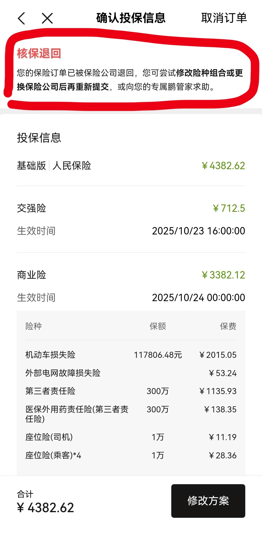 不止一个粉丝投稿给我,国庆节前支付宝还可以给新能源车投保,国庆节后就不给了。