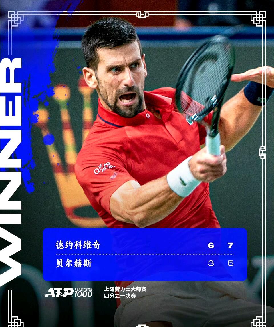 老当益壮!德约第十次晋级赛会四强。 上海劳力士大师赛男单1/4决赛,德约科维奇直