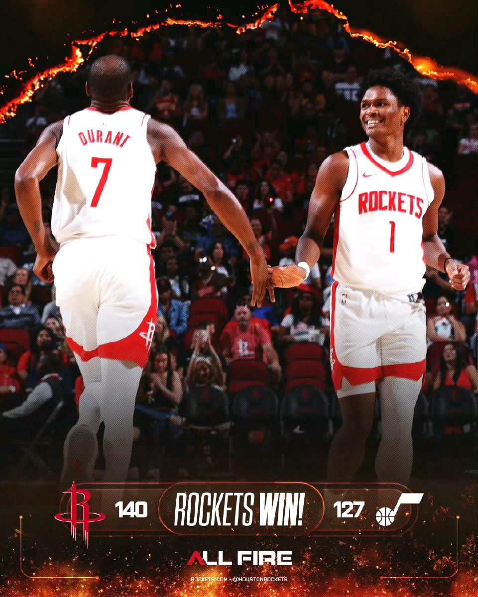 杜兰特来到火箭终于不需要得分防守一把抓了,火箭强调防守,且运动能力和对抗极为出色,他需要做的就是当好老大。 杜兰特火箭首秀出战23分钟,10投7中(开局3投0中后7连中),三分2中1,罚球5中5,贡献20分2篮板1助攻1抢断,真实命中率82%, 阿门汤普森谈杜兰特:“这很有趣,他就像我的释放阀,每次我需要助攻时,我就把球传给他”。