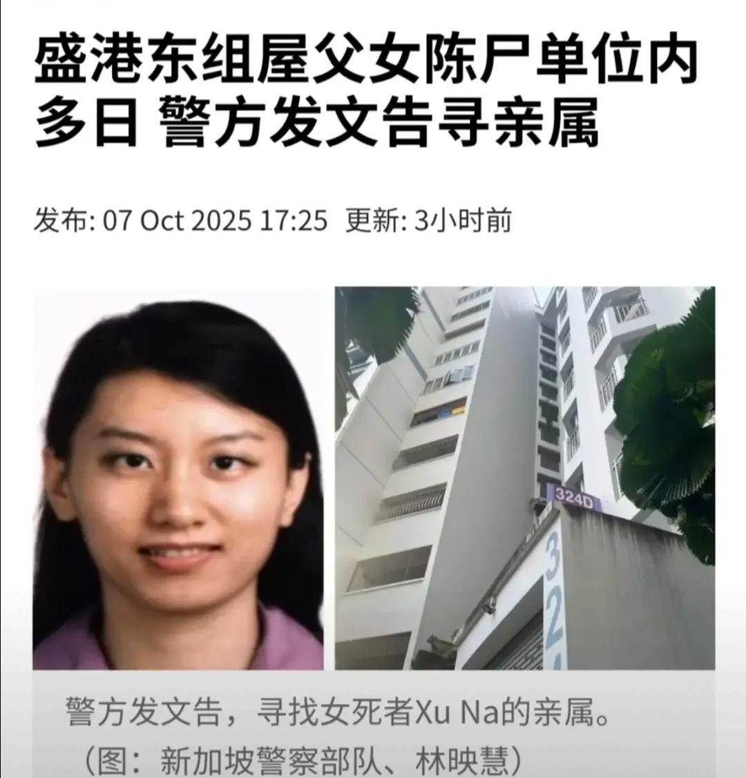 新加坡近日最炸裂的新闻 不是明星绯闻,是桩藏在组屋的悲剧 东北一家三口,多年前移民新加坡 父母都是研究岗高知 女儿中学随迁,读新加坡名校 后来考上剑桥,拿了博士学位 不知何时,女儿精神失常 好好的学霸,突然疯了 2016年母亲病逝 只剩老父照顾不能自理的女儿 前几日楼下天花板渗血水 邻居觉得不对,立刻报警 警方破门而入,发现父女已去世一个月 尸体腐烂,才渗出带血的水 现在警方发文告 寻找他们在中国的亲人 新加坡80%公民住组屋 组屋是保障房,不是廉租房 就算高知,符合条件也能住 李显龙说过,组屋是新加坡的根 剑桥博士在新加坡压力大 竞争激烈,拼到顶容易垮 移民后社交圈缩小 国内亲友远在东北,遇到事难求助 新加坡社区有居委会 但独居家庭常被忽视 这次事件后,有民众呼吁加强探访 为什么高知家庭会陷入绝境? ①精神健康问题隐蔽 高知总觉得自己能扛,不肯说 ②移民后社交圈萎缩 没朋友帮忙,遇到问题孤立无援 ③社区关怀没跟上 没人常敲门,直到渗血才发现 这事戳中普通人的痛处 不管是移民还是本地人 老了独居、家人患病 都是大家怕遇到的事 高知夫妻想给孩子最好的 却没料到精神压力压垮了女儿 老父照顾女儿十几年 自己也耗光了力气 如果社区有人常来看看 可能早发现异常 有网友说“已经是新加坡公民,就不要再跟中国联系了” 这种说法太冷漠 亲情没有国界 就算入了新籍,中国的亲人还是最亲的 我觉得 不管在哪里生活 家人永远是后盾 精神健康要早关注 社区要多敲敲独居者的门 别等悲剧发生才后悔 你觉得移民家庭该如何应对孤独和压力?