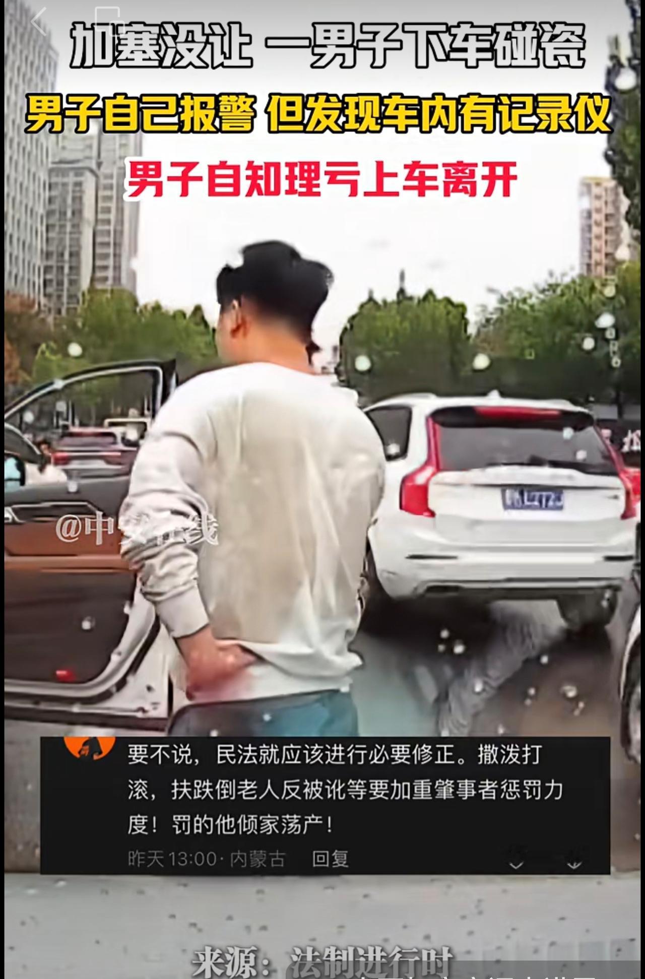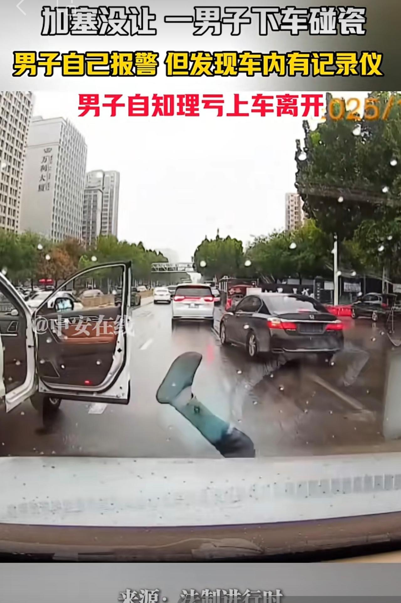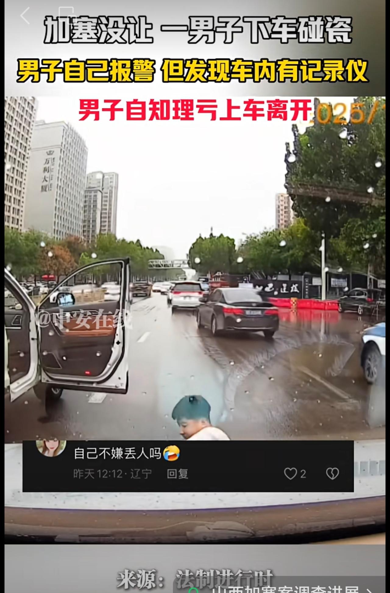 10月5日,山西。加塞没让 一男子下车碰瓷,男子自己报警,但发现车内有记录仪,男子自知理亏上车离开。(编辑:昊昊)