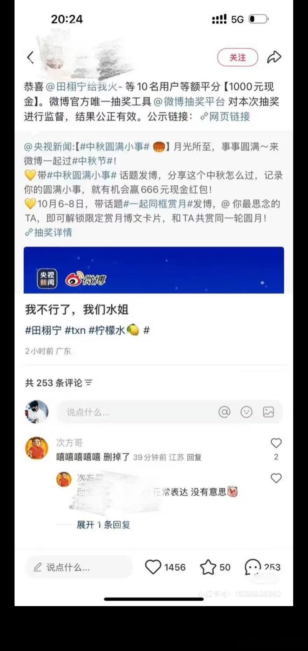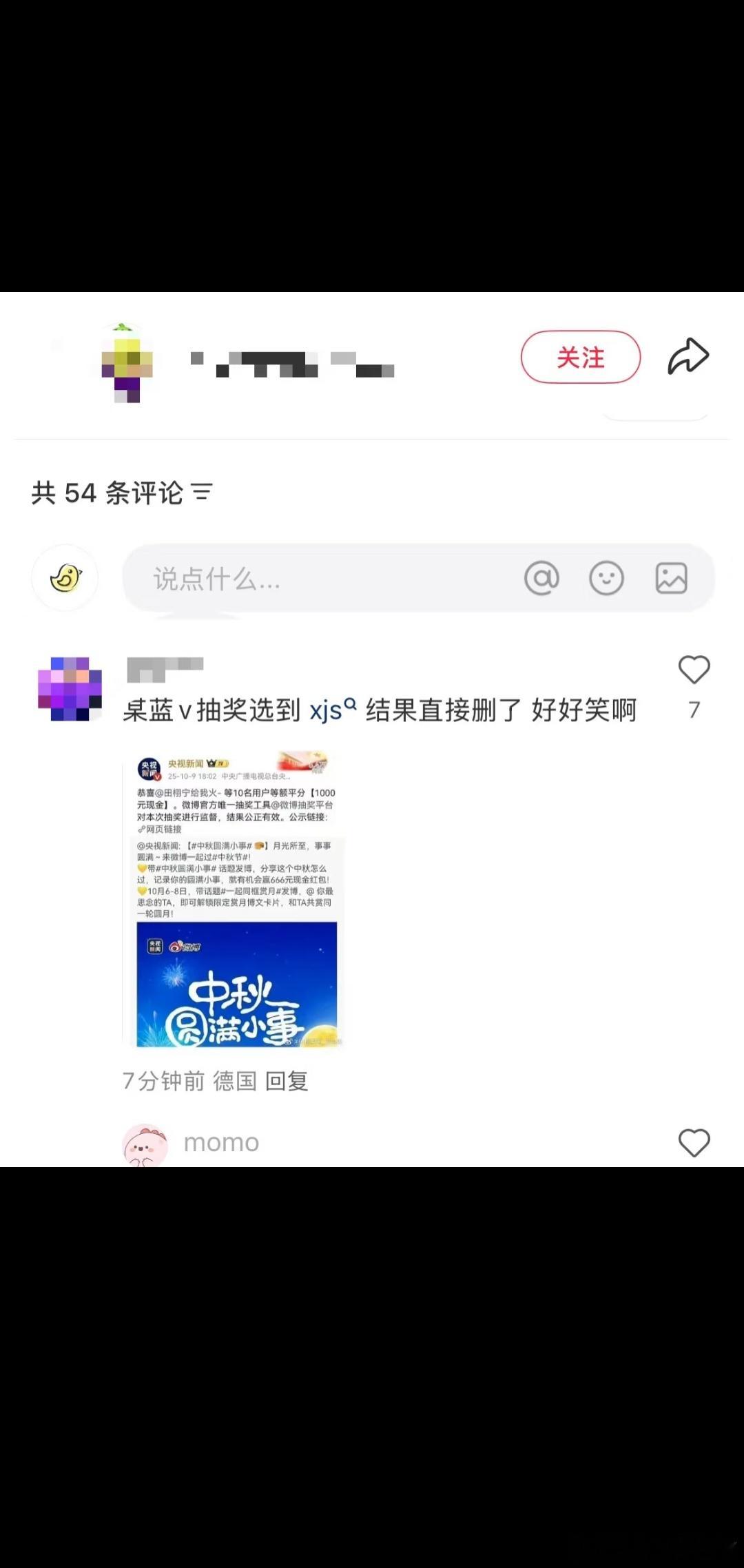某蓝v抽奖抽到田雷粉丝后直接删了,为啥尼?