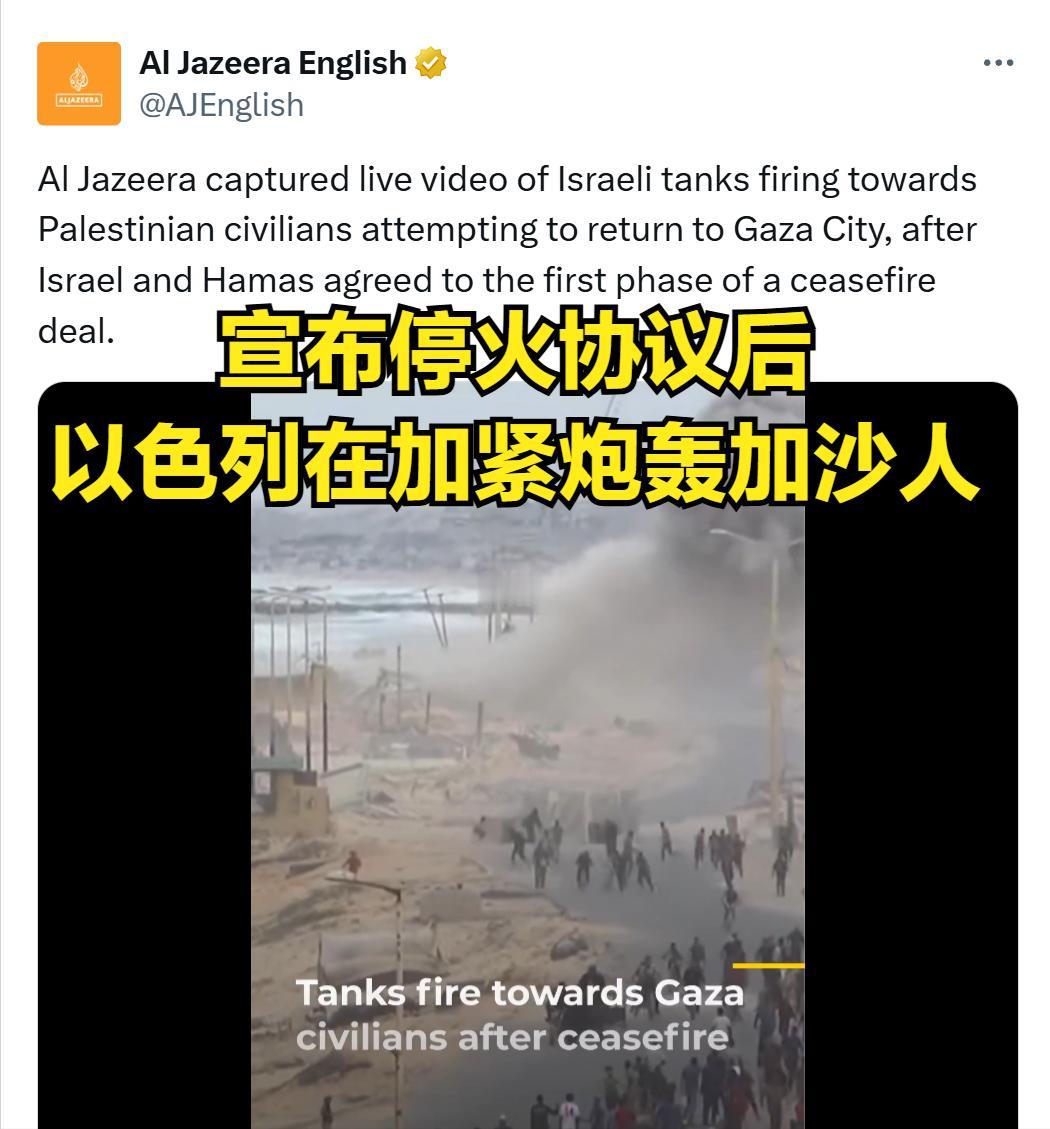 “和平终将触手可及”,加沙终于要停火了! - 哈马斯和美国代表已经进入会场进行谈判。 - 美国和卡塔尔两方已经给了哈马斯保证:【以色列不会重燃战火】——以色列媒体报道。 - 以色列在加沙的人质无论生死,均将回归故里。 - 以军会逐渐撤出加沙地带。 - 在以色列被关押的1.11w巴勒斯坦人不在加沙和平方案内。 - 以色列今天连续三次拖延了内阁会议(当地时间下午5点、拖到6点半,现在拖延到了晚上9点),他们需要在内部召开此次会议来批准最终的和平方案。 可终究是些许给人类社会的好消息,加沙人终能看到些许曙光。