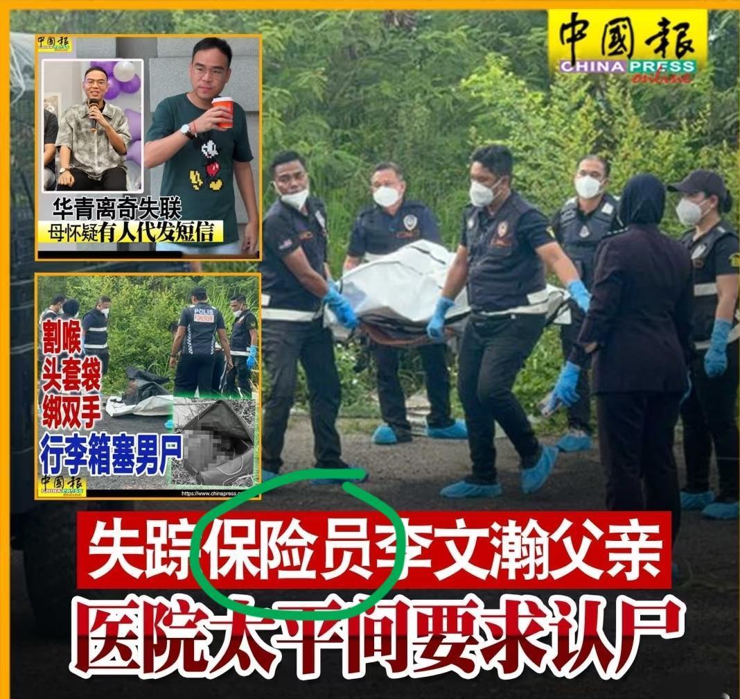 马来西亚31岁华人小伙李文瀚(音)疑遭残害,被装行李箱中弃于北马槟城某处路旁。