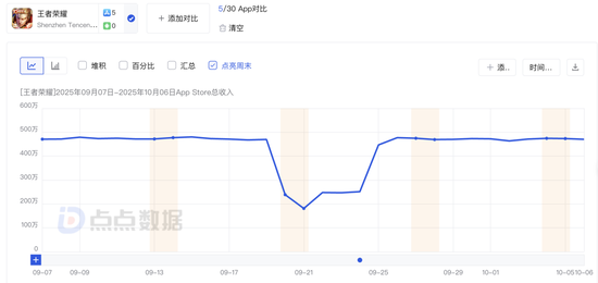 值得注意的是,根据点点数据平台的收入分析,在事件发酵的几天内,王者荣耀原本稳定的每日收入骤降,从原本每日近470万美元一度降至181万美元。