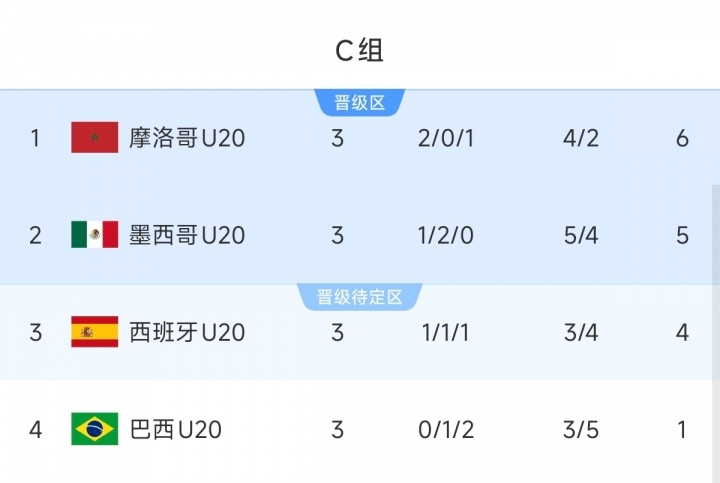 值得一提的是,C组出局的球队是传统豪门巴西U20,世青赛5冠王。如此看来,C组是当之无愧的死亡之组。