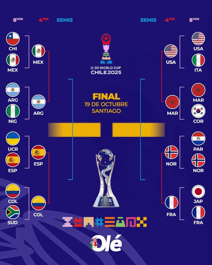 直播吧10月10日讯世青赛8强全部出炉,摩洛哥U20、墨西哥U20和西班牙U20全部晋级八强。