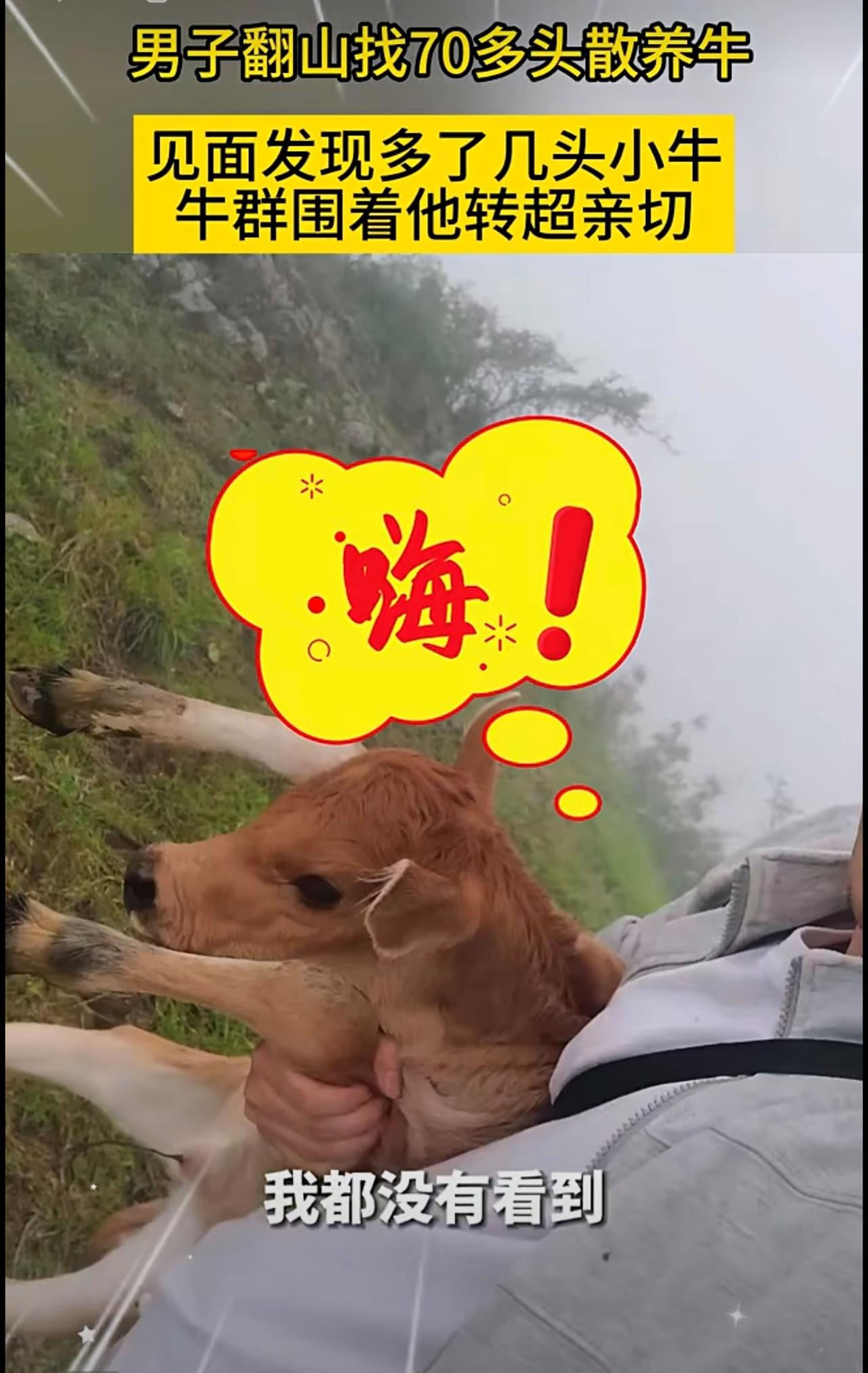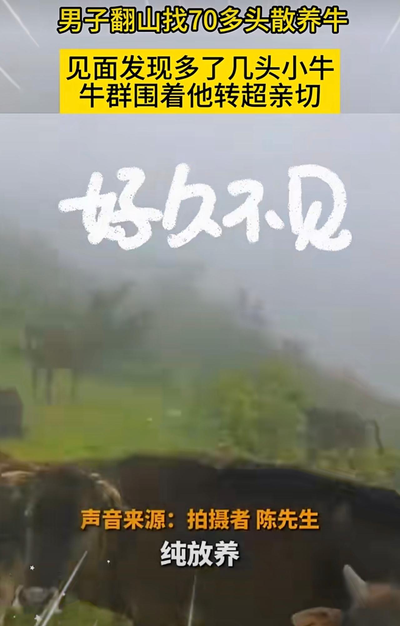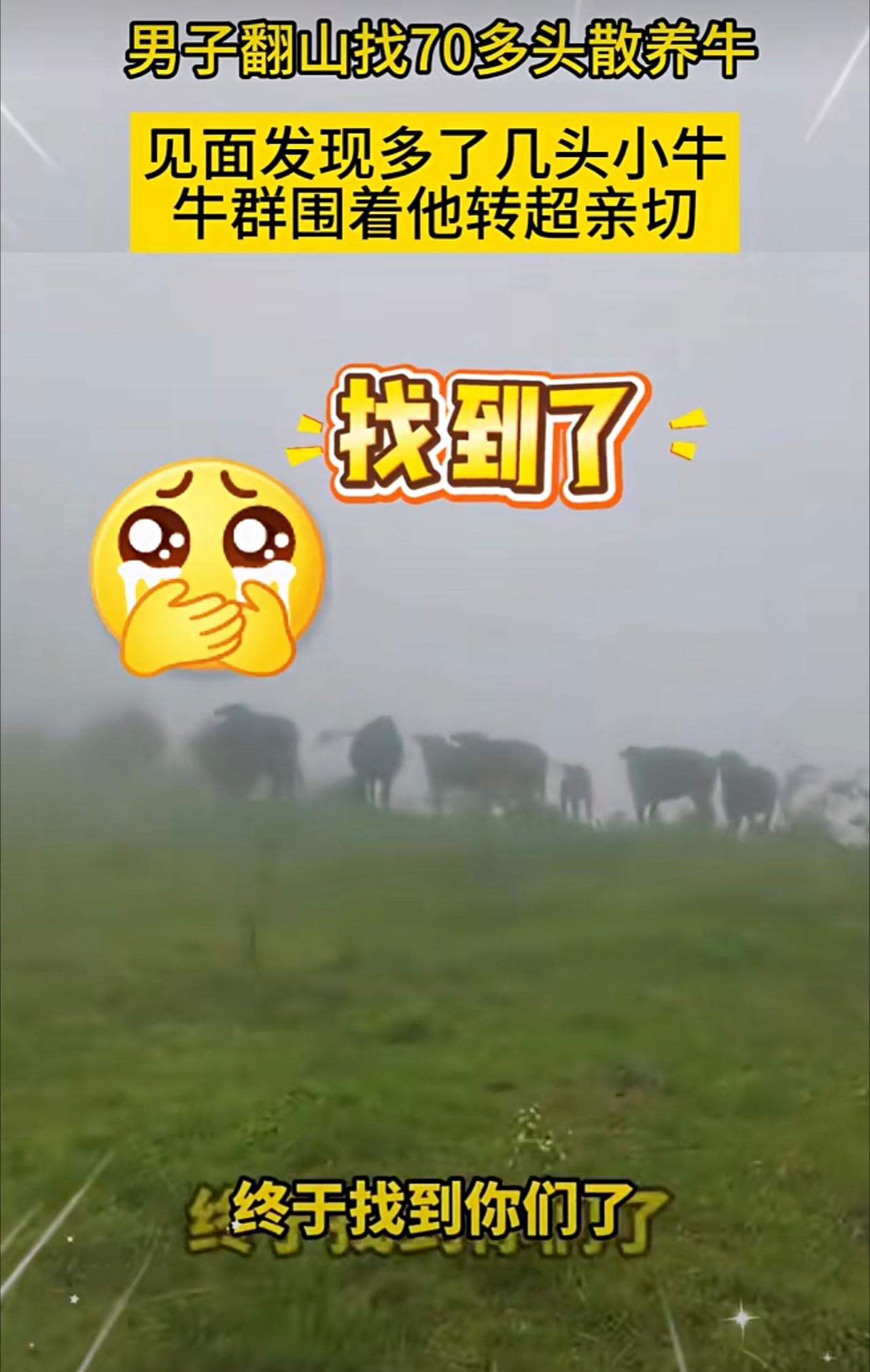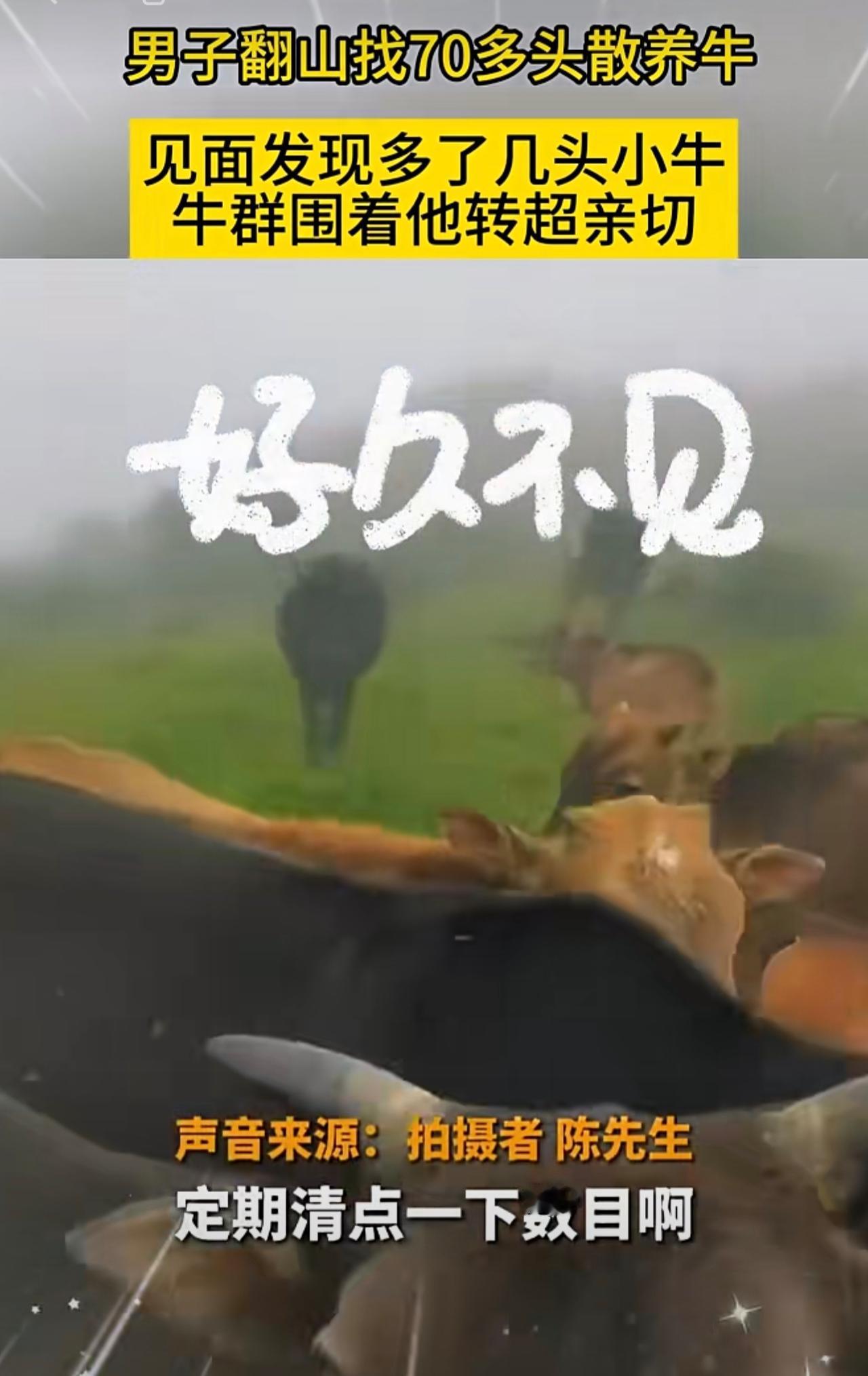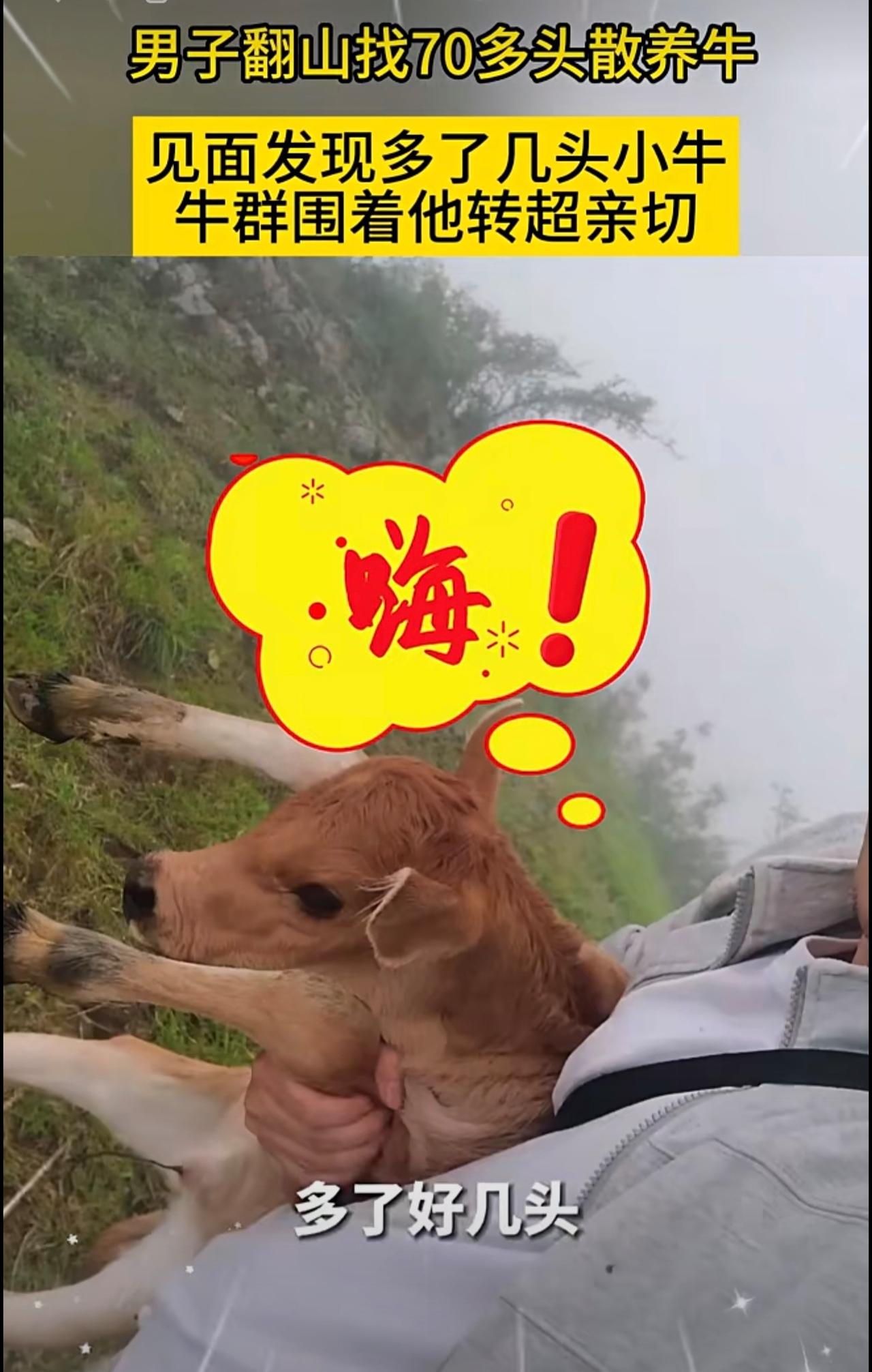 男子翻山找70多头散养牛,见面发现多了几头小牛,牛群围着他转超亲切。