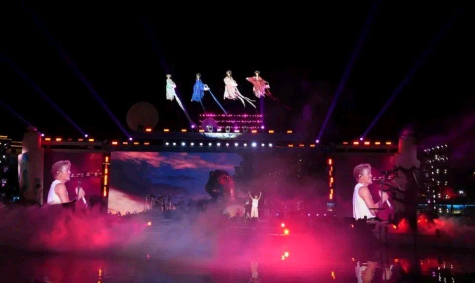 10月6日中秋夜,吴克群在鄂尔多斯准格尔旗湾Night街区水上舞台,以“准格尔大河集”压轴嘉宾身份登场,不仅带来精彩演出,还当场捐了10万,这善举太赞了! 演出中,他以《将军令》开场燃爆全场,《大舌头》节奏轻快,《为你写诗》前奏一响,现场成了温柔星海。四位古装舞者吊威亚降下,“天女散花”超梦幻。而且他和观众亲切互动,返场清唱《为你写诗》让粉丝感动落泪。吴克群不仅歌好听,还热衷公益、浪漫随性,此前还多次空降素人婚礼献唱随礼,这样的明星谁能不爱!