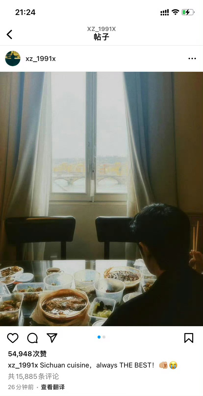 肖战在巴黎又去吃川菜啦!他家里人前几天刚刚在巴黎吃完川菜火锅!当年两人一起吃完火
