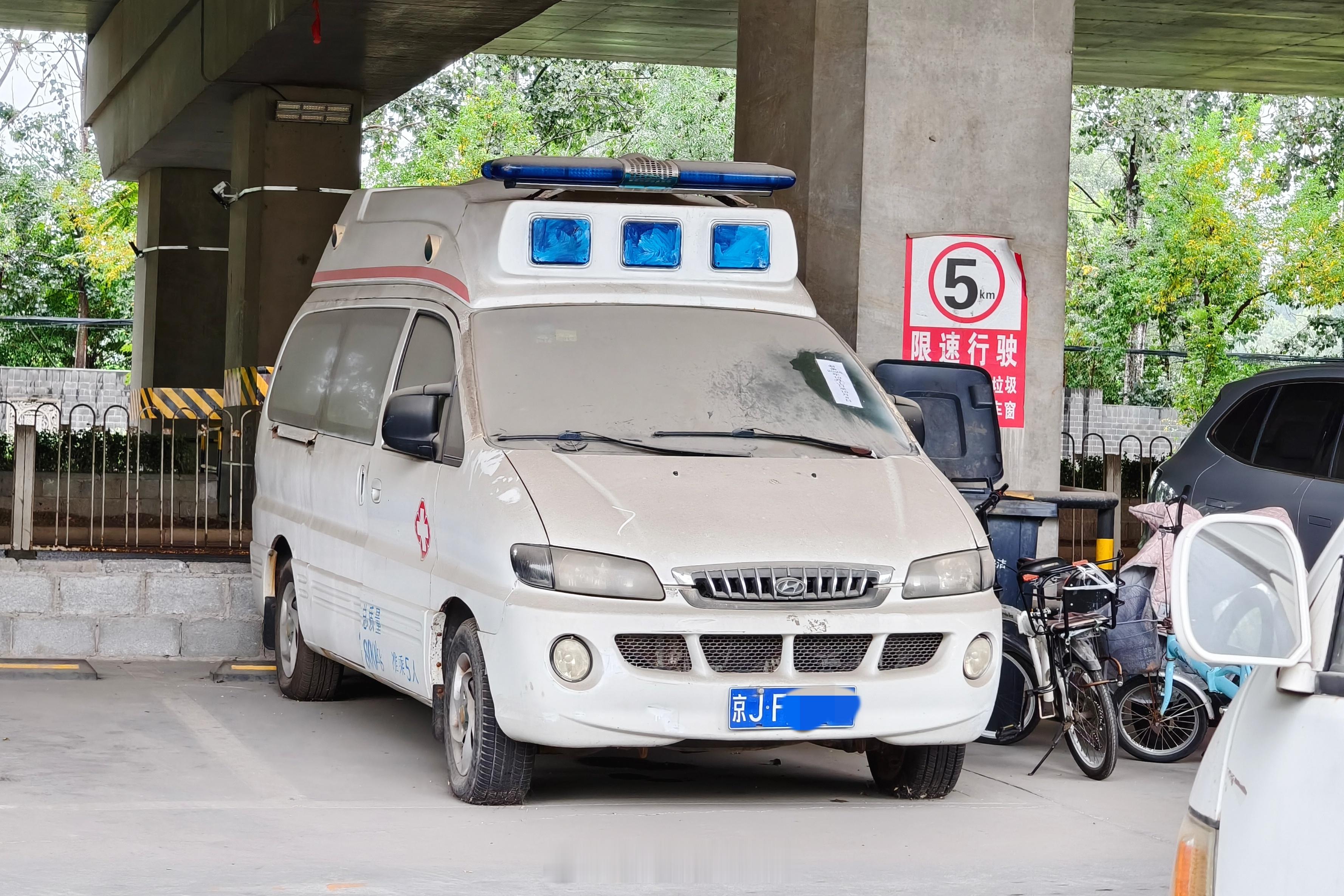 社区医院门口的救护车,看起来就算没贴封条也闲置很久了。