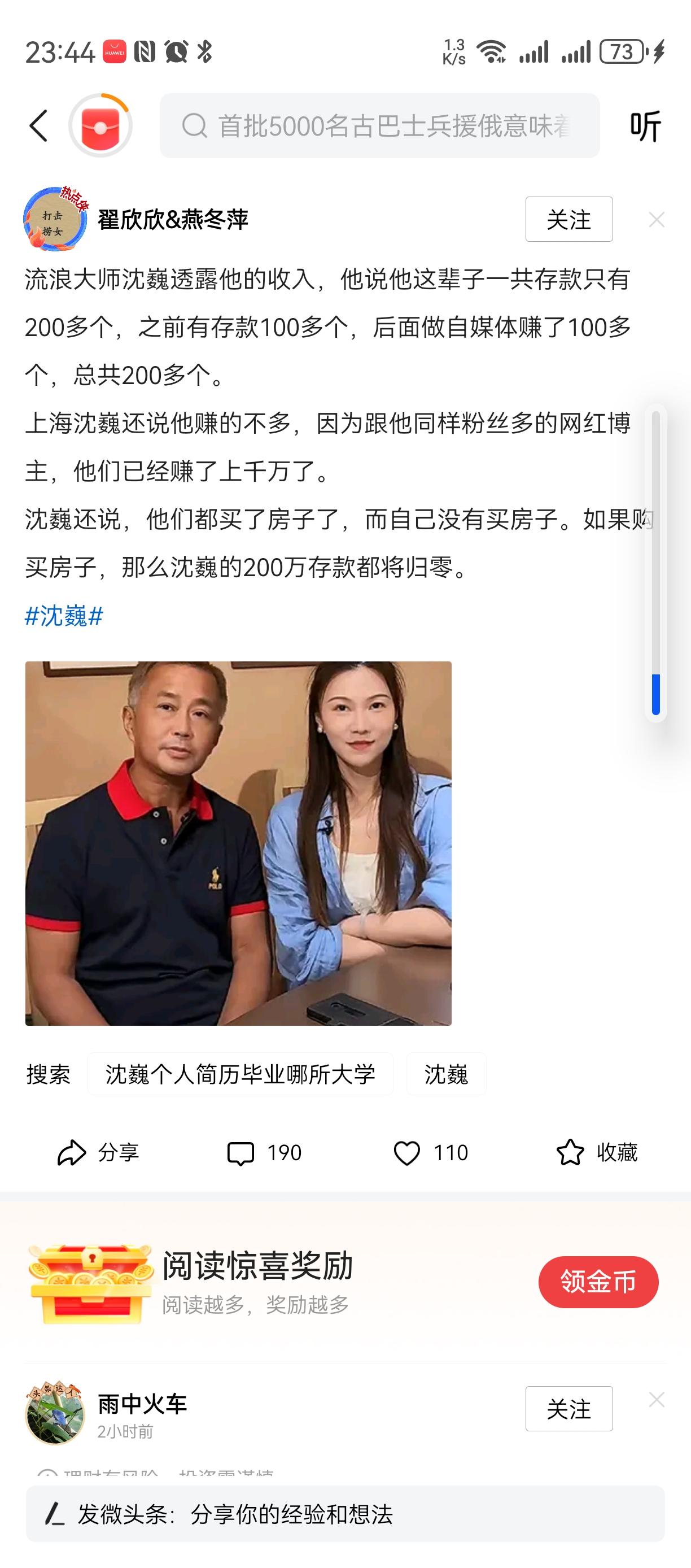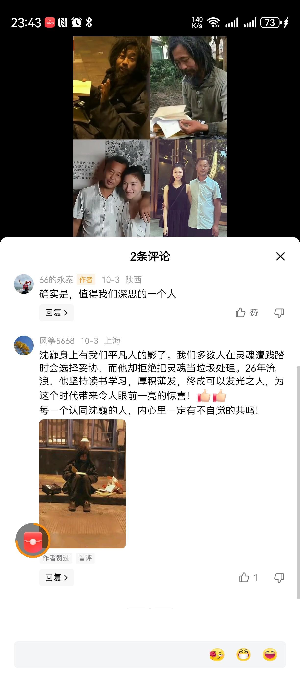 沈巍, 不止诗与远方, 乞丐的传奇人物, 老牌大学生及公务人员。 我还是挺佩服他的, 不羡慕功名利禄, 做乞丐这么多年, 遭了多少白眼沈巍流浪汉 上海沈巍 吃了多少苦。 如今虽然年入很多万, 还有漂亮女助理 我觉得他还是有才华的, 比那些夜场甩头哥强多了[赞][赞][赞]沈巍流浪