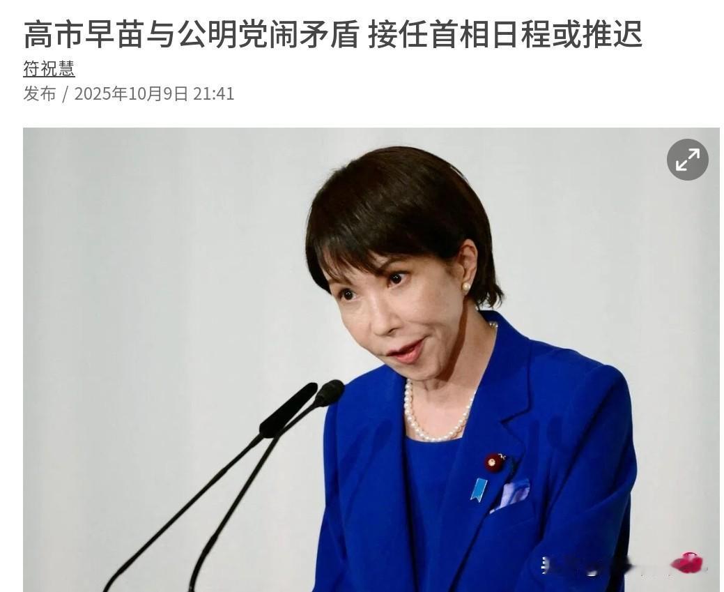 高市早苗首相之位受阻,公明党开出条件,第一条就是要求高市早苗必须答应不参拜靖国神社!10月10日,根据外媒报道,由于自民党在众议院席位不够,高市早苗正跟公明党寻求合作组建联合政府。不过,现在来看,高市早苗的首相之位并非唾手可得。在总数465席的众议院,自民党有196席和公明党有24席。 高市早苗的策略就是先拉公明党,并考虑拉拢27席的国民民主党组建联合政府。但是,现在高市早苗第一步的计划就出现了大问题。面对高市早苗的拉拢,公明党第一条就要求高市任上不得参拜靖国神社。公明党党魁斋藤铁夫表示:若不组建联合政府,就等于我党不会在首相指名选举中将票投给高市早苗。 很显然,如果高市早苗不能争取公明党的支持,高市早苗的首相之梦恐怕要破裂。而由于双方现在谈不拢,理念相左,日本首相选举已经推迟到了10月20日以后。无疑,从日本内部政局来看,这说明什么呢?这说明高市早苗根基非常不稳,掣肘的地方极多。在自明党内部,高市早苗需要麻生太郎的支持,在党外,自明党需要获得他党的帮助。这或许也就决定了作为极右翼的政客,高市早苗即便上台,其作为的空间也不大。
