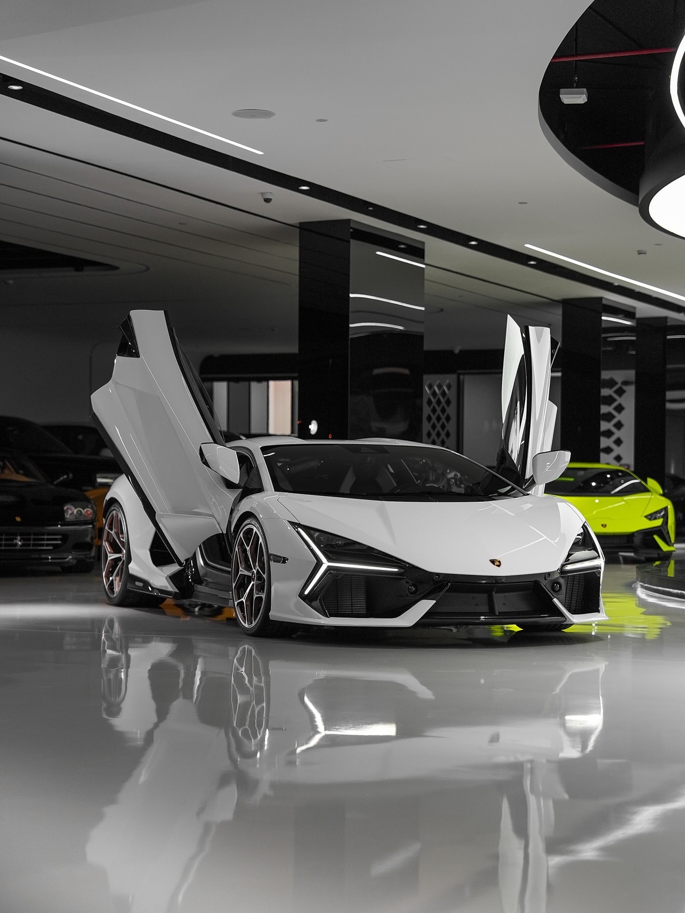 兰博基尼Revuelto标志着新一代V12时代的到来——将6.5L自然吸气发动机与三个电动机结合,产生了惊人的1,001马力。每一道线条,每一次咆哮,每一次脉动都重新定义了混合动力性能。
