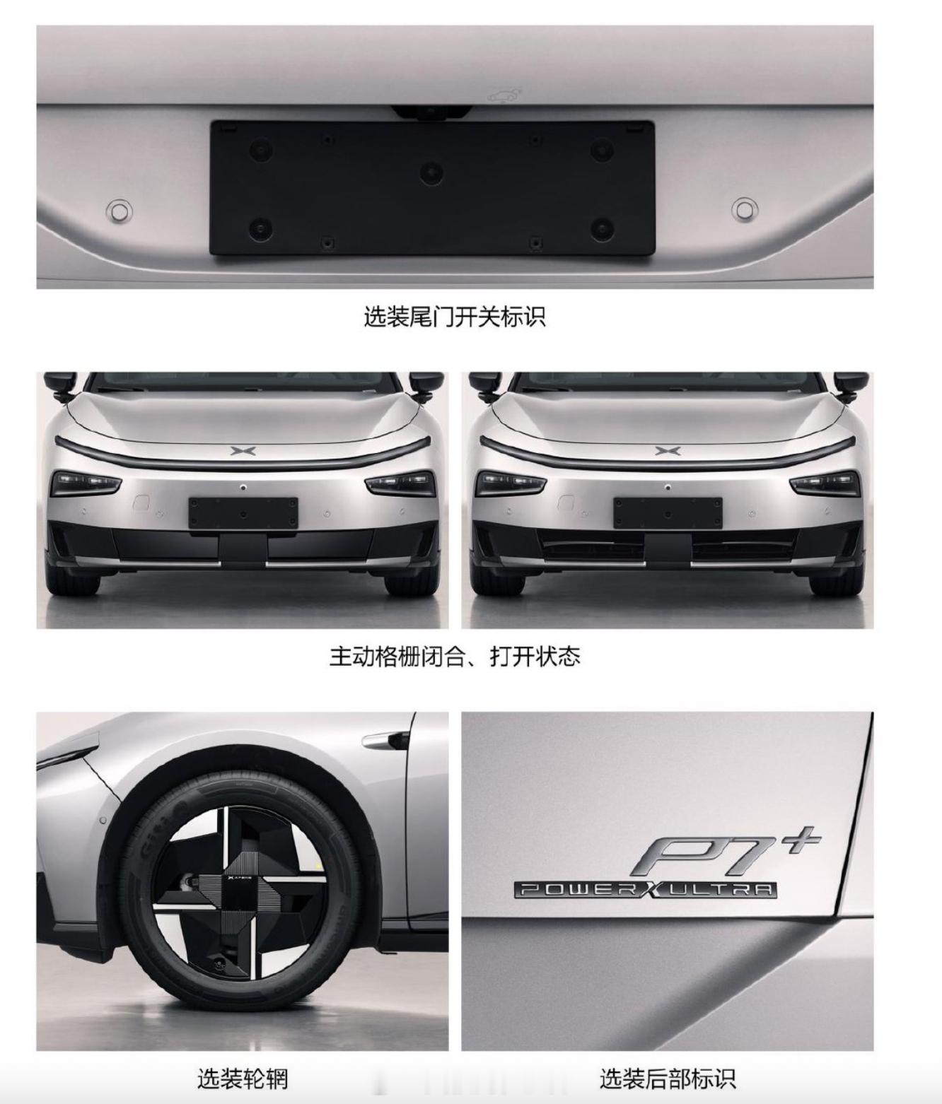 -增程版P7+外观-仅前脸下半部分换成了主动进气格栅,另外轮圈换了一个新的三叶草样式,还提供一个20英寸的轮圈选装;