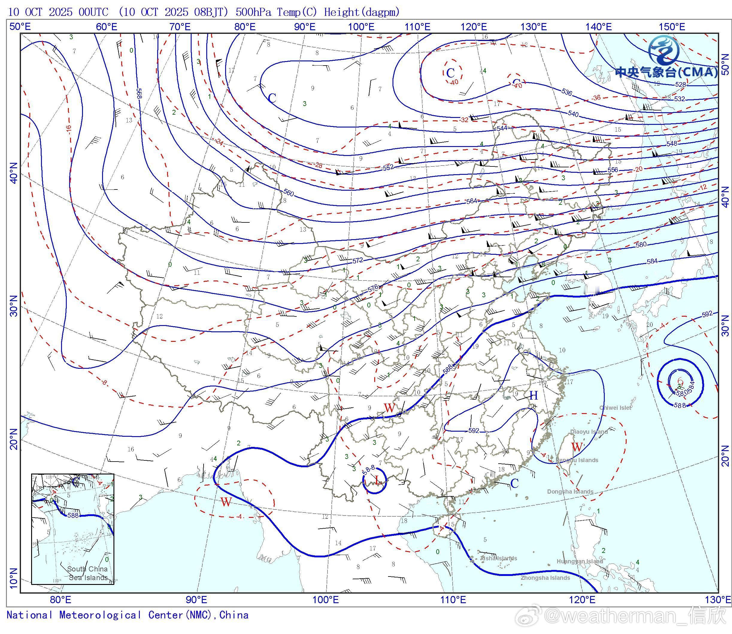 【云图看天气】今天上午10时的卫星云图,南方在副热带高压控制下,大范围的晴天,利