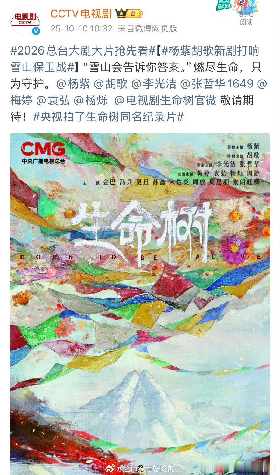 2026央视片单有生命树,期待杨紫白菊 [打call]