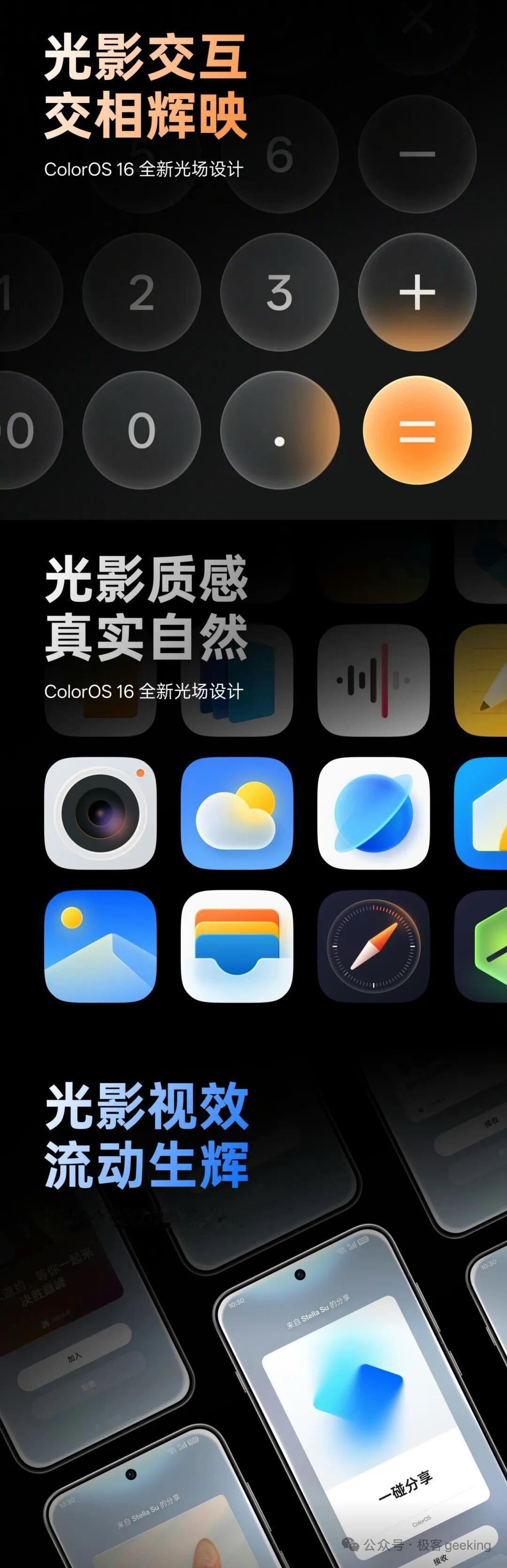 向iPhone致敬,向iPhone学习,向iPhone模仿,又一款果味十足的安卓系统开启内测,喜欢苹果“液态玻璃”设计的宝子们,可以冲了,oppo全新系统ColorOS 16震撼来袭,依然主打一个“机圈德芙 全面流畅”,依然主打一个向iPhone看齐。 就在刚刚,oppo官方宣布启动新一代的ColorOS 16 系统首批内测招募,首批招募机型包含以下图片中的出现的所有机型,一共32款,这些机型将从本月中旬开始收到OTA 升级推送,不过先得报名参与招募内测活动,这也是第一批吃螃蟹机型,先看看有没有自己的爱机吧! 从oppo官方今天发布的ColorOS 16 动画图可以发现,新系统的全新设计UI,采用的是“光场”设计,通过模拟真实光影变化,带来全新通透轻盈的空间感和真实自然的光影视觉,能发现新的系统 UI 界面更好看了,我们也能从中看到更像苹果 iOS26 的“液态玻璃”设计方式的影子了,看来oppo也要像小米一样,准备对标苹果了, 不过有一说一,新系统这6个“0”和6个“快”是业内天花板般存在的,0卡顿、0延迟、0闪屏、0闪退、0闪跳、0卡死,这估计只有ColorOS 16 能做到,也只有oppo敢这样说;再来看看6个“快”,开机快、启动快、响应快、滑动快、扫码快、加载快,快男估计都没有oppo这般快,但愿oppo这一次能做到言行一致。 好了,大家赶紧去报名升级尝鲜去吧,oppo是闷头干大事的,不会让大家失望,希望大家喜欢oppo的系统。