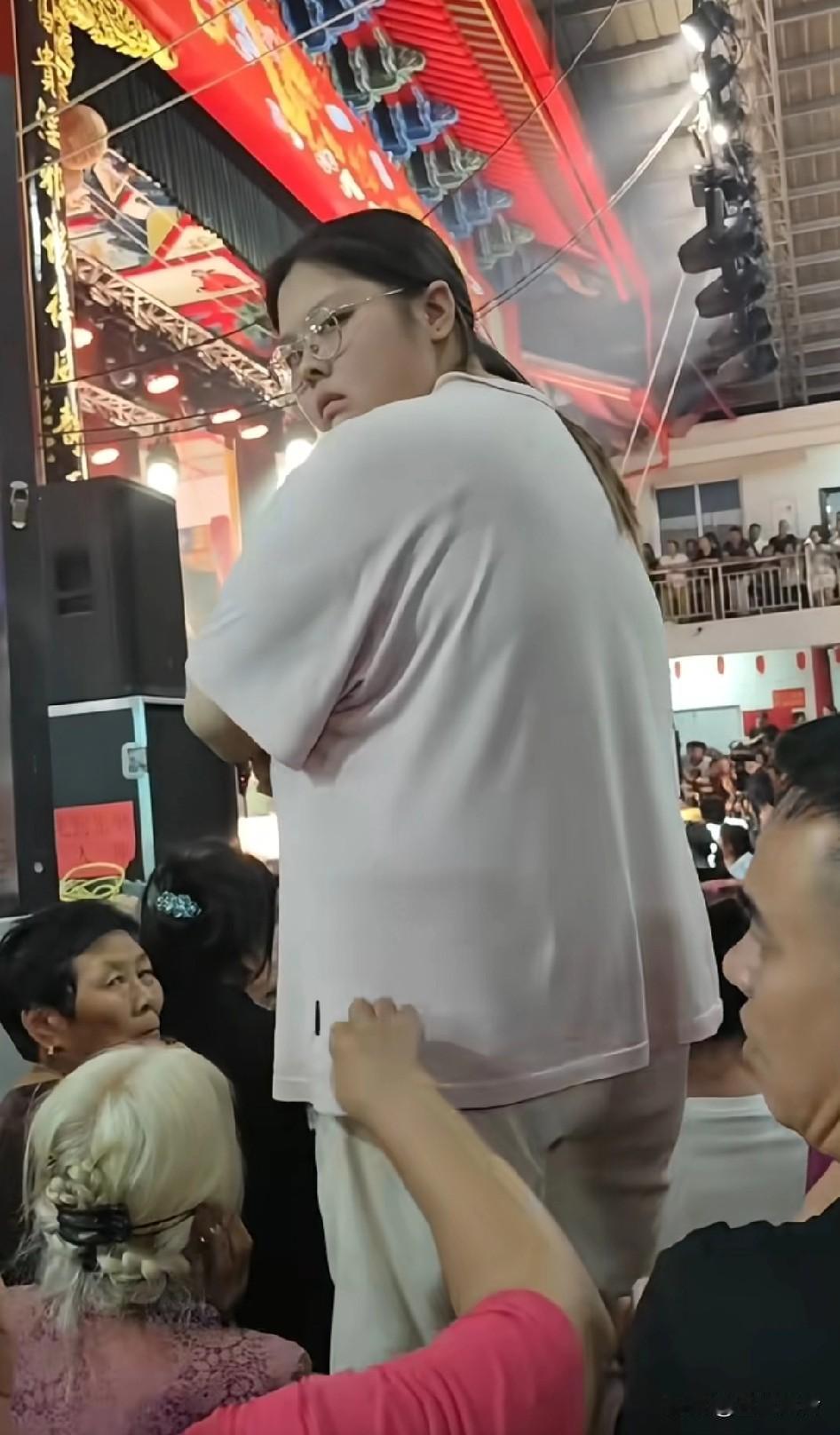晚上看戏看不到,就看到她的屁股,说她一句转过来用眼神杀你!她会不会觉得别人都错了? 意大利炮何在,快抬出来,不知道是什么样的家庭,才能培养出来这样的人才。后面有人提醒她了她还堵在那里,正常人做不出这种事,还是不要惹她吧,她揍人可能不犯法。忍一时她不会打你,退一步她打不着你。一般这种形象不好的人,也会破罐子破摔,等一下闹起来,戏台都会被掀翻