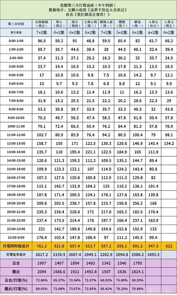 入青云第三日灯塔分时对比,拉表的都是扑街剧,现在主要就是看扑到什么程度[doge]
