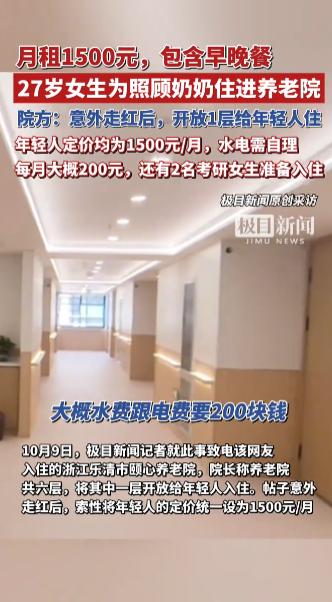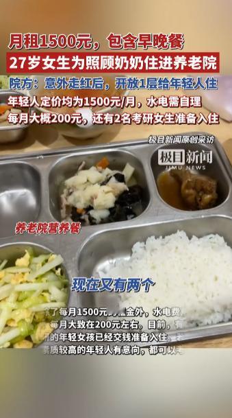 “人怎么能这么聪明!”2025年10月,浙江温州,一27岁女生为了方便照顾奶奶住进养老院,月租1500元包含早晚餐,没想到却吸引了大批年轻人,有两名考研女生也准备入住,网友:这也太适合考研人了! 很多老人不愿意住养老院,养老院反倒是吸引了不少年轻人,住宿条件比在外租房好,也不用自己做饭,如果自家老人在里面还能照顾照顾,简直是不少年轻人心中的“乌托邦”。 一名27岁的女生为了方便照顾养老院的奶奶,选择住进了养老院,没想到这里的生活让她感到很幸福,女生将这里的环境、餐食等分享到了网上,瞬间吸引了大批年轻人。 院方得知后专门开放了其中一层给年轻人住,定价为1500元/月,包吃包住,水电费每月200元需要自理,这就相当于1700元住进了一个大人“全托班”一样。 要知道,现在在外面租个好点的房子至少要1000多元了,每天还得操心吃饭问题,有的打工人根本来不及自己做饭,只能吃外卖,相比之下养老院的饭菜不仅干净,营养还均衡。 两名考研的女生准备入住,不少网友直呼明智,在这里没有人打扰她们学习,饭菜每天都是现成的,住得也舒服,简直不要太适合考研人! 信息来源:《月租1500元,包含早晚餐!27岁女生为照顾奶奶住进养老院,院方:意外走红后,开放一层给年轻人住,定价均为1500元/月,水电需自理》极目新闻