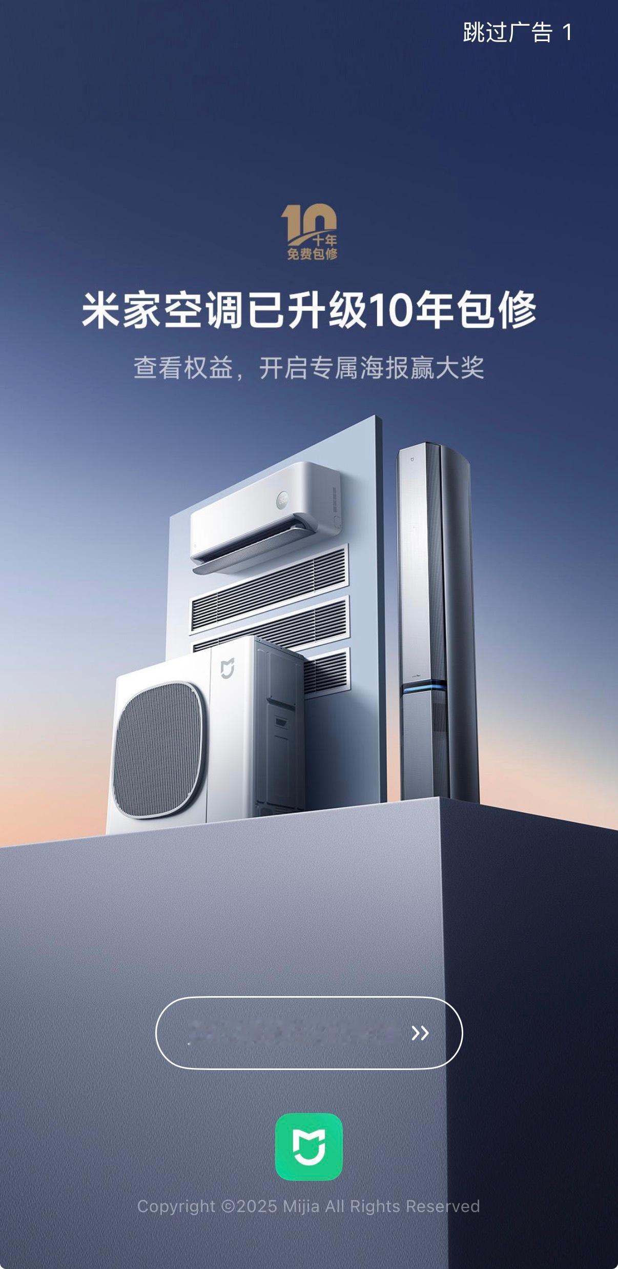 今天的米家App开屏广告变成了小米空调10年免费包修,不确定是在嘲讽哪一