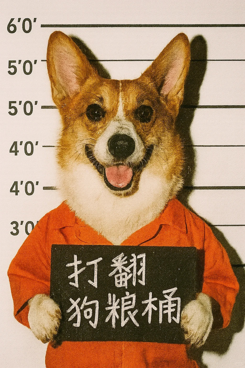 柯基的“犯罪实录”来了!穿橙色囚服举着“随地大小便”“吃…呃…”等牌子,数罪并罚的样子居然有点可爱?你家狗子也干过啥“坏事”?