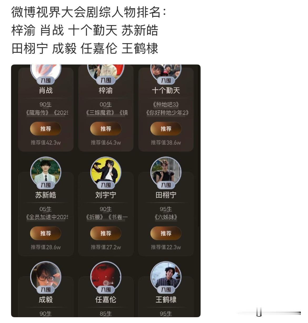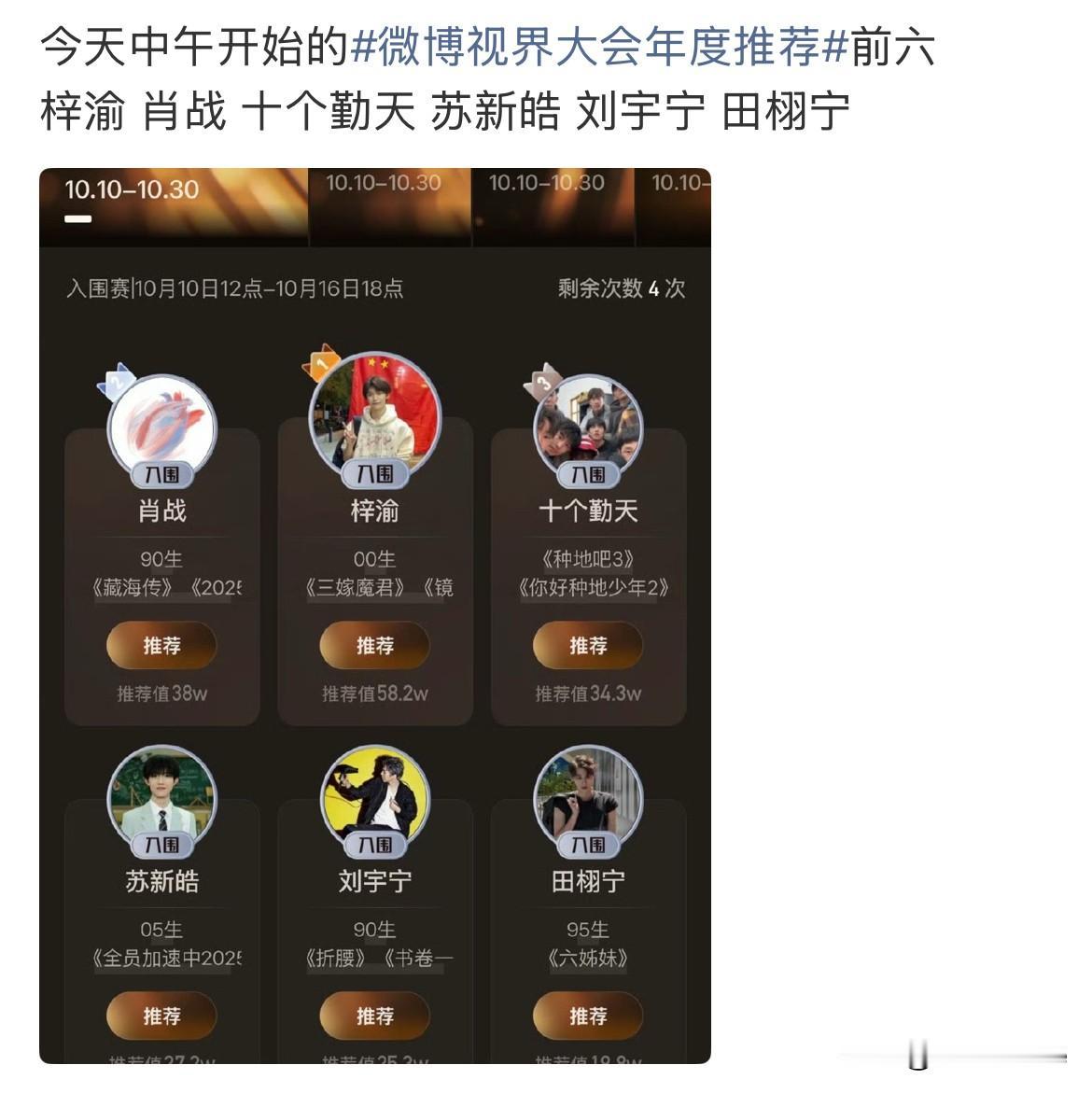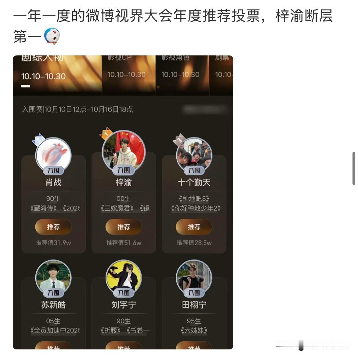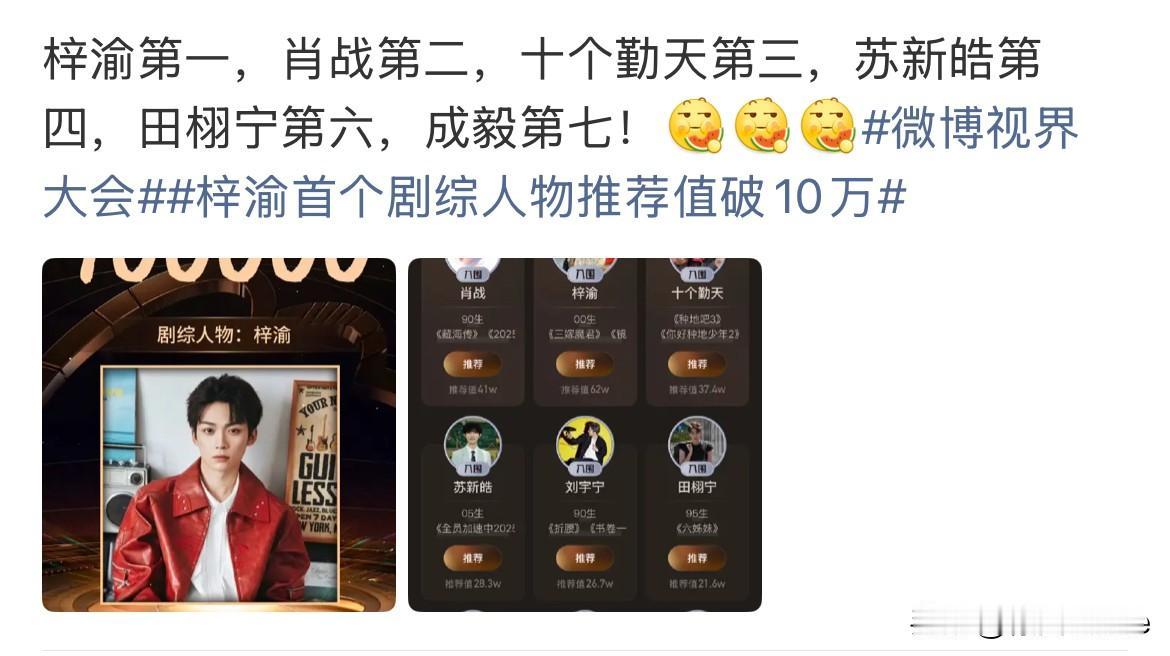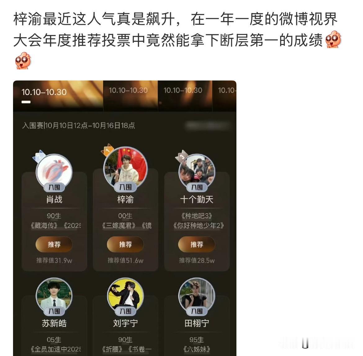 10月10日,梓渝断层第一,肖战第二,看完呵呵一笑,别在这闹笑话了,好么? 踩肖战一头觉得好了不起,发一堆通稿,让人看着可笑,说实话,这个第一不如底下的老六,起码人家作品是观众熟知的,在内娱,这个暂时的第一还只能算是边缘人物,不算入主流,根本不算盘面上其他八个人的对手,流量高,但毫无实力,整个人就很虚! 与其在这里争这个,不如去帮他争一个好的剧本,好的角色,来的实在! 想在内娱站稳脚跟立足,还得作品说话,不然没人瞧得起,出门都是虚的,学学老六吧!