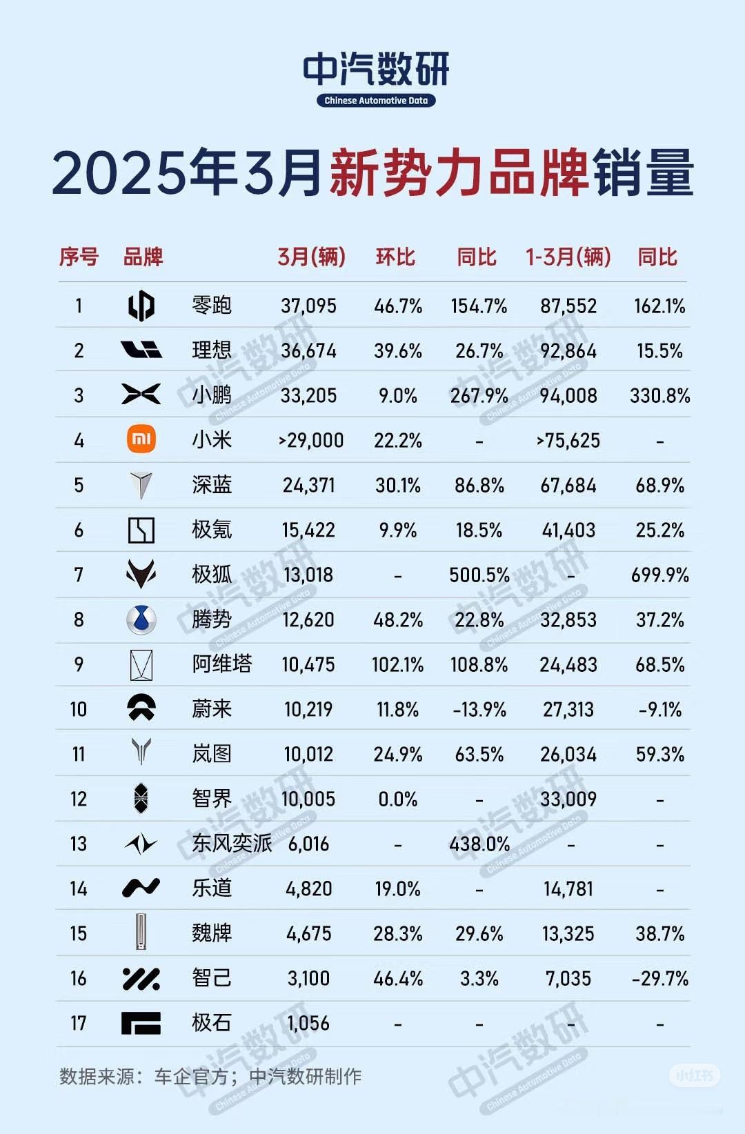 三月的汽车销量榜单里面还有理想汽车的身影,当时各家的新车还没有上市,理想的销量还