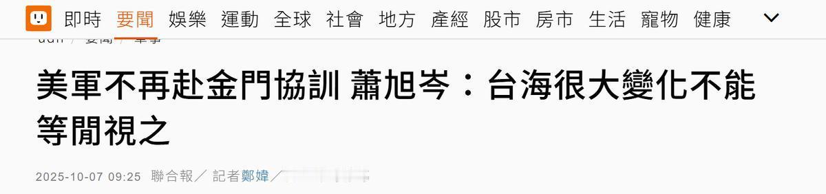 美军顾问撤出金门,台军弃守台海一线,金门加速“非军事化” 说起金门,离厦门真没多远,最近的地方不过十公里,隔着一片水面,抬头就能看到对岸灯火。曾经,这里可是冷战时期的“前线铁壁”,枪林弹雨、碉堡密布,“老兵的故事”每天都在上演。 如今,风向陡然变了——驻军大幅锐减,美军顾问打包走人,台军最精锐的“海龙蛙兵”也悄悄调到澎湖,金门一下从“铁墙”变成了“窗口”,局势变化让人忍不住多看两眼。 金门的军事味道正在迅速淡化。台军这波操作很直接,撤走了岛上最能打的部队,驻军人数降到三千人都不到,跟过去十几万守军的声势已经天差地别。 美军顾问撤出,说明美国早就不打算把外围岛屿当成重点,转而教台军在本岛搞“非对称作战”,更别提最近“海龙蛙兵”移防澎湖后,训练内容都改成了操作无人艇。 种种调整背后,既有台军和解放军实力差距拉大的现实,也有美国“以台制华”算盘的影子,金门“非军事化”的背后,是一场地缘博弈的明争暗斗。 台军的收缩,其实是无奈之举。历史上,金门曾是台军的门面担当,冷战时期防务部门数据一摞摞,最巅峰的时候,十几万人在岛上转圈,马祖也跟着热闹。 可眼下,金门不足五千人,马祖才两千出头。根本原因不难明白,解放军这几年装备更新,海陆空一体化作战水平一天天提升,金门离大陆实在太近,真要打起来,守不住就是守不住。台军再怎么练也没法填补这道鸿沟。 美国的算盘摆得明明白白。金融时报等媒体都说了,美军现在推荐台军集中资源守本岛,外围小岛守不住就别死磕,不如把有限兵力用在刀刃上。 台军也只能被动配合,跟着美国搞起“非对称作战”,把重心放在无人艇、无人机之类的新玩意儿上。最典型的就是“海龙蛙兵”移防澎湖后,主业从潜水爆破变成了操作无人艇。 说白了,就是学乌克兰那套,以小搏大,拿无人艇骚扰对手大舰。 可问题在于,解放军的区域拒止体系已经很严密,无人艇顶多是小打小闹,真要大规模突袭,生存率有多少,岛内外专家心里其实都有数。 美国卖给台湾的无人机、导弹,价格不便宜,合同签了一摞又一摞。看上去是帮台湾提升防务,实际上也是让台湾在“以台制华”的大棋局里绑得更紧。 台当局乐意配合美国,嘴上喊着自强,心里其实也清楚,这种拖延战术并不能改变统一的大趋势,反而把台海变成随时点火的“火药桶”,让普通老百姓跟着担心。 话说回来,金门的“非军事化”不光是军方在动,民间声音也很强。金门县政府和不少团体公开倡议要求减少军力,大家都明白,一旦打起来,金门肯定首当其冲。 谁都不想家门口变成战场。岛上很多人都盼着和平,甚至希望能和大陆多通水、多通桥。经济上,金门早就和厦门有了密不可分的联系,水是对岸送的,游客也是对岸来的,生意红红火火。 对比历史上的金门炮战,现在大家更看重的是发展和生活。金门和大陆的经济融合已经不可逆转,军事化的意义也就逐渐淡出视野。 岛内政治上,蓝绿两派对金门的去留争得面红耳赤。国民党批评民进党“弃守祖辈土地”,认为这等于把历史的根都丢了。 但民进党当局面对现实,不敢明说放弃金门马祖,也没本事守住,只能低调处理,尽量模糊回应媒体提问。这种两难,实际上暴露出台当局夹在美国和岛内压力中间的尴尬处境。 再看两岸的互动,金门和厦门之间的通水、通桥规划一再推进,早已不是单纯的军事要塞。许多金门人更愿意把这里当成桥梁,而不是战壕。 和平,成了这里最主流的民意。对比1958年金门炮战,当年靠外部势力死守,最后只落得一地鸡毛。 现在再回头看,外部势力终究靠不住,棋子永远有被弃的一天。现实已经证明,靠硬碰硬解决不了根本问题,和平发展才是正道。 台军的收缩不是一时兴起,而是实力差距摆在面前,谁都看得出来。所谓“非对称战力”,再怎么升级,也改变不了两岸统一的终极趋势。 金门的角色正在发生转变,从军事堡垒变成两岸联通的纽带。再怎么割裂,也割不断地理和血脉,金门的烟火总归要和厦门的连在一起。和平发展的路,才是真正属于这片海岛的未来。 参考资料:台军“海龙蛙兵”移防澎湖,美军不再赴金门协训 2025-10-08 14:13 台海时刻
