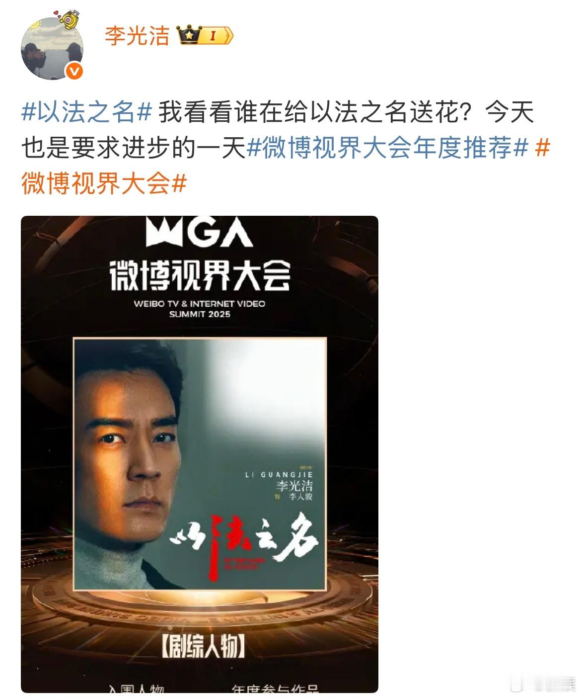 微博视界大会年度推荐出炉啦!恭喜《以法之名》入围!与此同时,蒋欣、李光洁、是安也分别入围年度剧综人物,这个剧组还是太全面啦!!!剧组官号和主演们也纷纷下场玩起了剧中的梗,冲浪速度这一块也是被他们狠狠拿捏了~大家快去给这个超有梗的剧组送花花吧! ​​​