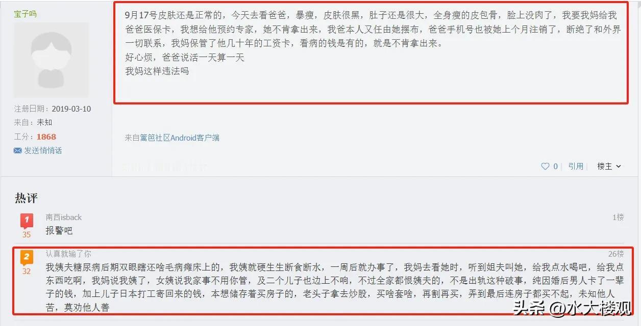 “爸爸肝腹水严重,我妈不肯带他看病,咋办,报警有用吗?”女人狠起来还真是毒啊。