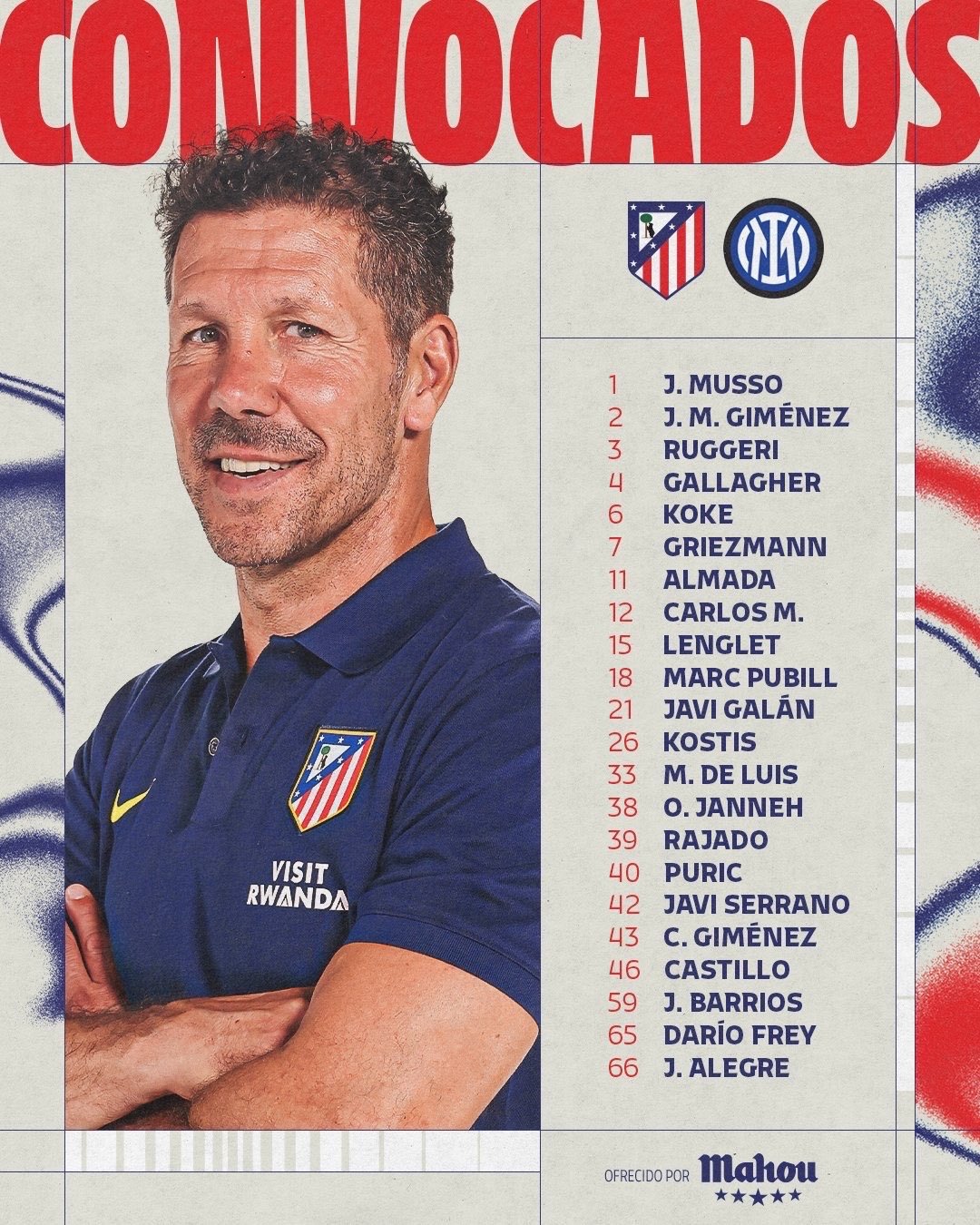 阿尔马达伤愈回归赛场🔥他和穆索进入今夜马竞vs国米的友谊赛大名单。阿尔马达马竞