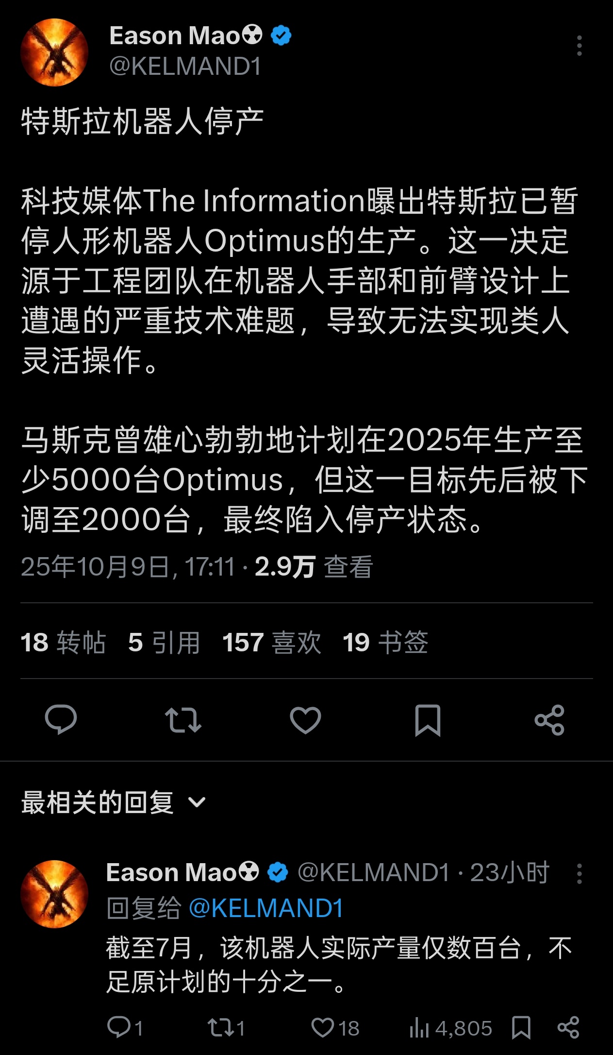 再对比特斯拉的Optimus因遇到技术难题难产!未来地球上所有的高科技都将在东大实现,没有例外![酷]