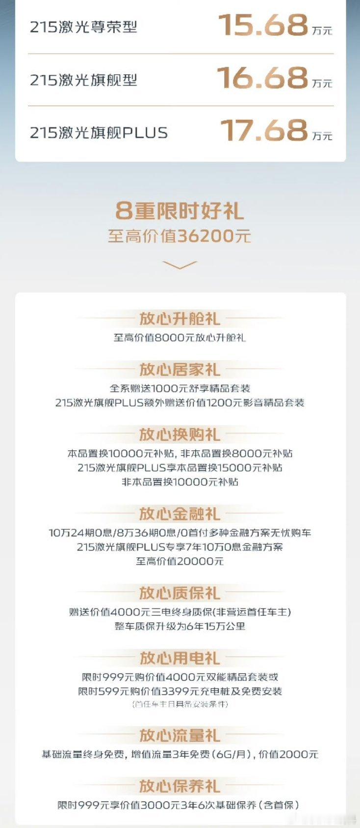 驾驶辅助方面,不同于视觉版5TOPS算力和依赖高精地图的高快NOA(不能上/下匝道),激光版不仅搭载禾赛ATX激光雷达,还升级了128TOPS的地平线J6M芯片