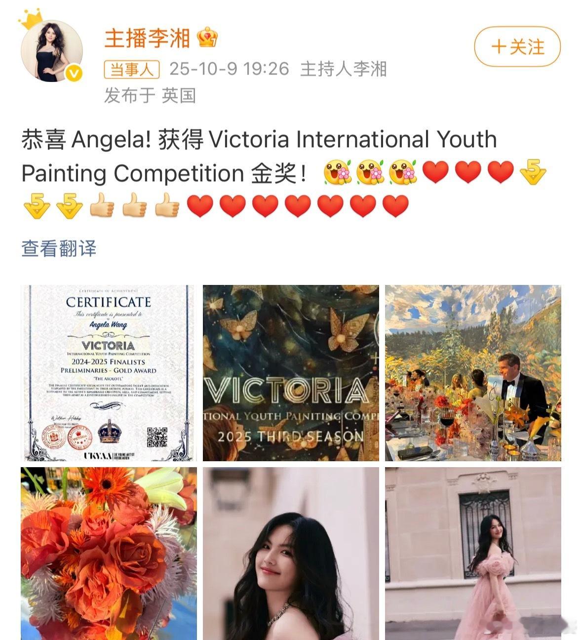 李湘王岳伦发文恭喜王诗龄果然优秀是有基因的!王诗龄爷爷是国画大师,爸爸央美毕业,现在她也拿下国际绘画金奖,这一家子的艺术细胞绝了