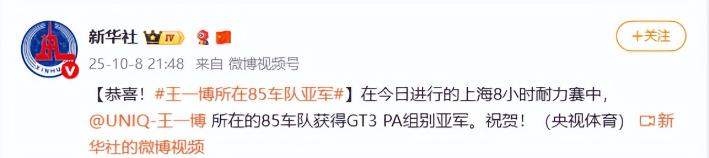 央媒都下场祝贺!王一博赛车拿亚军,这顶流凭什么这么“能打”? 最近内娱的焦点,不是新剧或综艺,而是王一博在上海8小时耐力赛斩获的亚军奖杯——新华社特意发文“恭喜王一博所在85车队获亚军”,能让央媒如此及时道贺的艺人,娱乐圈寥寥无几。 从《陈情令》里清冷的蓝忘机,到赛道上的实力黑马,他的跨界足够“破圈”。这份亚军含金量极高:上海8小时耐力赛是上海国际赛车场运营21年的自主IP赛事,四大组别、25辆赛车、86名车手同场竞技,正赛需跑满8小时再加一圈。 比赛拼的不只是速度,更是8小时的体力扛压、赛车掌控与突发应对能力,心态失衡便可能前功尽弃。 更令人惊叹的是,这是王一博首次参加8小时耐力赛。当其他车手适应节奏时,他直接刷新个人最快圈速,打破“新人魔咒”。 比赛中途多车失控或故障,赛道混乱,他却稳稳控车,不仅未受影响,还在自己上场阶段跑到全场第二、组别第一。从前“艺人玩赛车是作秀”的质疑,被他用实打实的成绩彻底击碎。 赛场之外,王一博的银幕表现同样亮眼。他手握金鸡奖、华表奖最佳男主角提名,票房与作品质量双在线,让他在影视圈站稳脚跟。 一年半内,四部主演电影狂揽30亿+票房,《热烈》《长空之王》更入选“五个一工程”优秀电影,这是国家级艺术认可。从蓝忘机到《冰雨火》陈宇、《无名》叶先生,角色性格迥异,他却能精准抓准精髓,用细腻演技引发观众共情。 主流认可不止靠作品,更靠他“根正苗红”的形象与担当。 10月9日,央视官宣第十五届全运会会歌《气势如虹》MV由他与粤港澳青年歌手共演,且他是首位单独担纲全运会主题曲核心演唱的艺人。歌曲发布当天,央视新闻、人民日报等30余家官媒同步推广,单日话题阅读量破亿,成全运会宣传“流量爆点”。 去年,他还以中国青年代表身份,在COP29联合国气候变化大会线上倡议环保,展现中国青年的国际担当。 对认准的事,王一博向来“要么不做,要做就做到底”。12岁因街舞比赛入坑,学一年便闯进全国IBD大赛16强;赴韩当练习生时,每天14小时高强度训练;如今任《这!就是街舞》两季冠军队长,不仅展顶尖舞技,更全力推广街舞文化,获“中国顶尖舞者推广大使”称号。就连小众的滑板,他也玩得专业,成为“中国滑板运动推广大使”,助力其走向大众。 商业价值上,他是内娱公认的“高奢收割机”。 2024年拿下多个重磅代言,既有香奈儿、罗意威等国际顶奢,也有库迪咖啡等国民品牌,成功签下香奈儿、罗意威等顶奢和库迪咖啡等国民品牌代言,商业价值备受认可。 从顶奢到大众消费领域,他的影响力贯穿多维度,成品牌眼中“品质与流量兼具”的合作伙伴。 回溯成长路:13岁离家赴韩当练习生,从万人中突围出道;2019年凭《陈情令》爆红后,未止步“流量艺人”标签,不断解锁赛车手、演员、舞者、推广大使等新身份。 内娱不缺昙花一现的艺人,但像他这样在赛车、影视、舞蹈、商业等领域长期保持高水准,还持续突破的全能型艺人,实属罕见。 有人说他“天赋异禀”,但陈晓早透露:“天赋之外,他的学习能力和悟性更难得。”其实他最厉害的,是14年来始终如一的韧劲——对每件事全力以赴,以“做到极致”为标准。 内娱顶流从不是炒出来的,而是像王一博这样,用日复一日的汗水与坚持,一点点“攒”出来的。