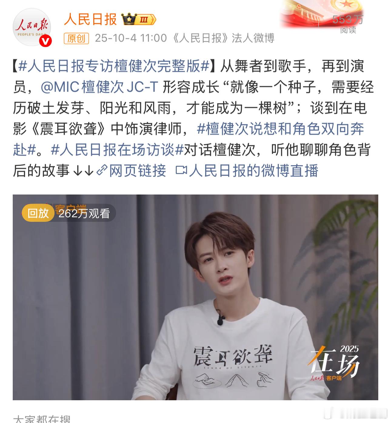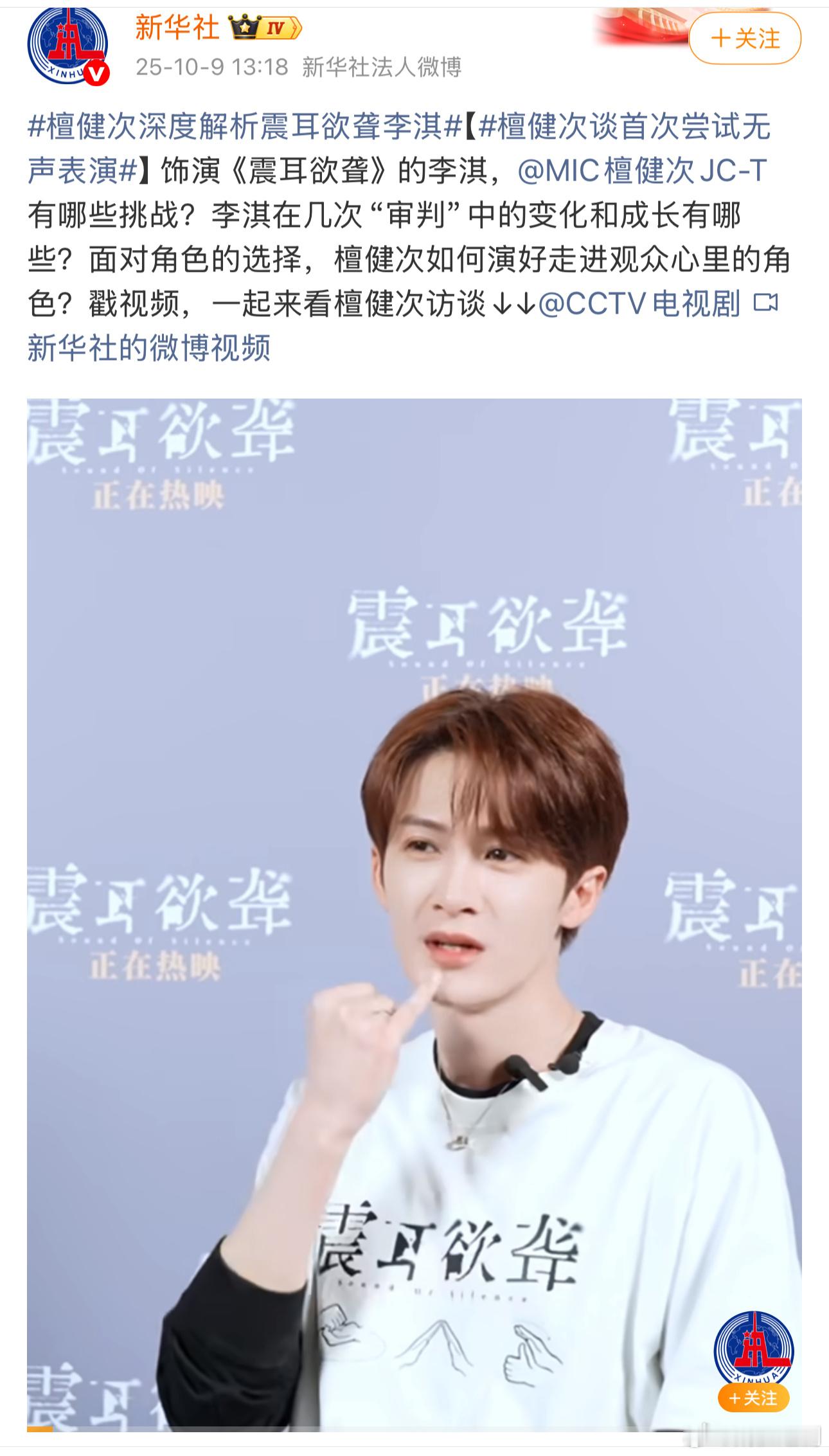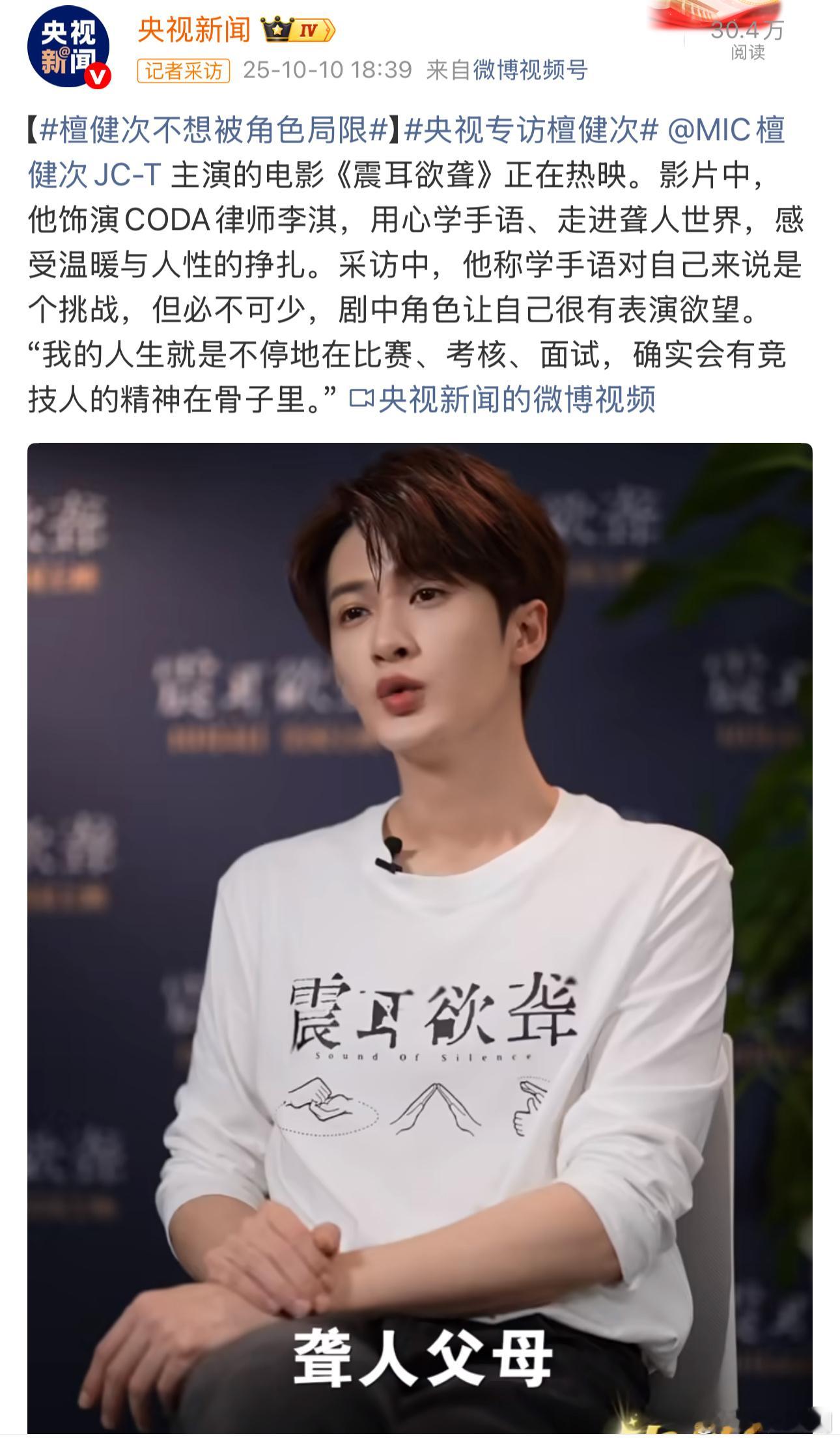 檀健次携电影《震耳欲聋》已接受央视新闻、人民日报、新华社权威媒体的专访,根正苗红