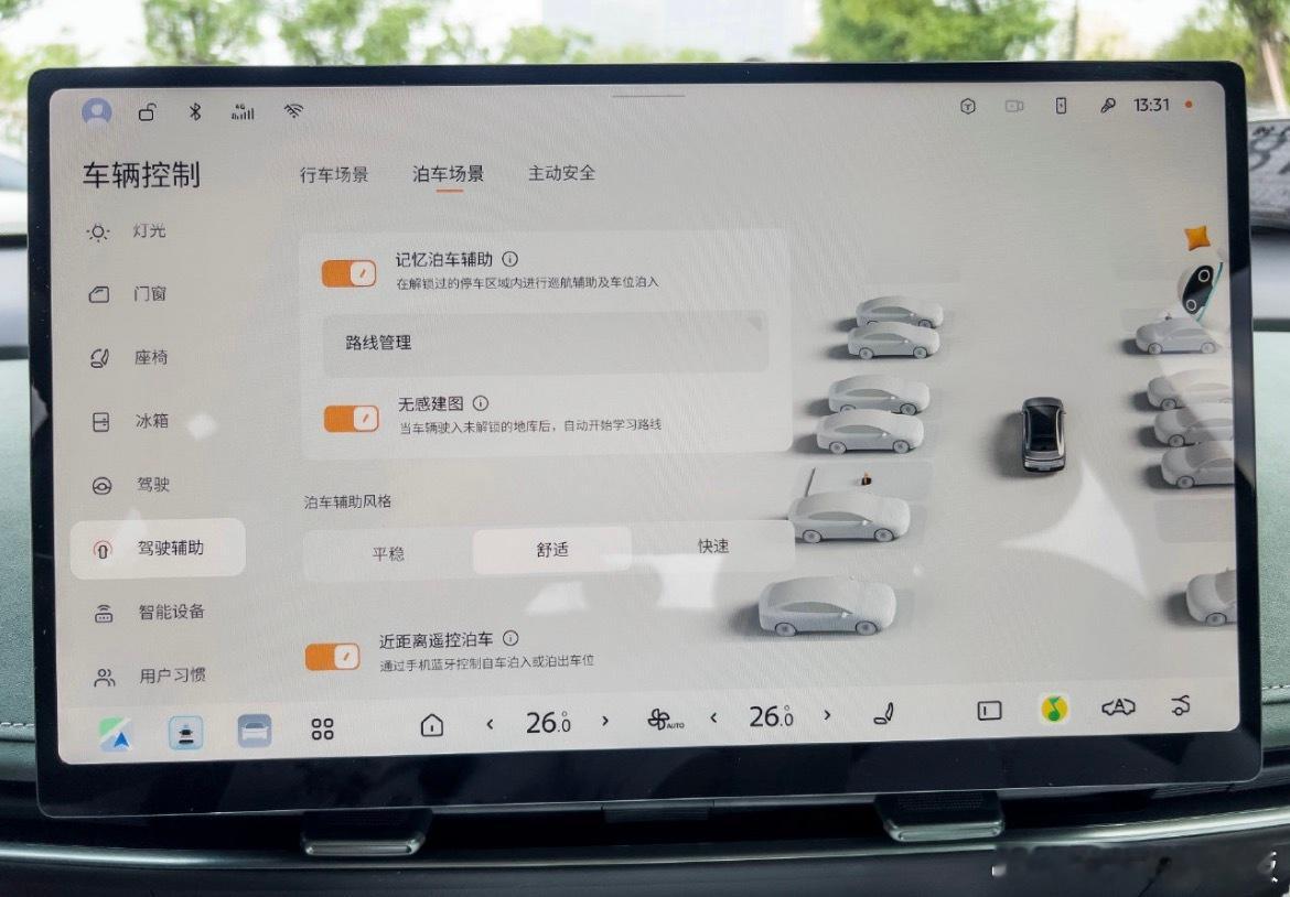 记忆泊车也非常的强,能记20条停车的路,一条最长3公里,连跨楼层的车库都能找到!李公堤多层车库,就教了它一回,回头它自己找车位,见着行人就停,前面车出库它就绕,语音还提醒得明明白白,对于新手来说这个功能真的太香了!
