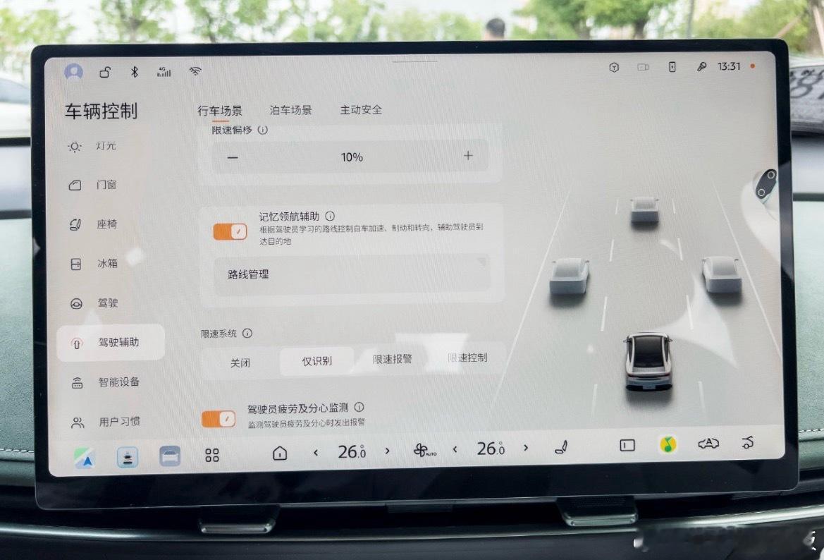 城市记忆领航重点说:能记10条常走的路,一条最长100km,日常通勤妥妥够使!苏州官渎里立交那岔路,红绿灯、待转区看得也是清清楚楚,提前减速缓停,转弯也很丝滑,比我开还顺不少;智能限速也不傻,看路况调车速,不会用死速度开。莫邪路遇着施工,我干预下方向盘绕开锥桶,手一松它立马接过来继续开,人机配合非常默契!