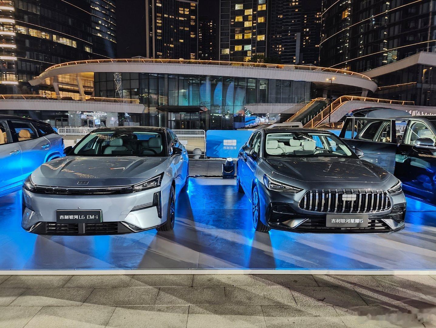 吉利银河全系列都横在这了。每一款车都有丰富的故事,从L380到银河E5,几乎每