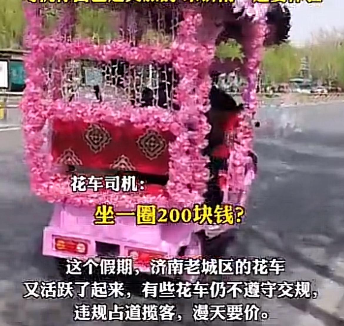 山东济南,市民惊讶地发现,小长假期间,屡次清理的花车又卷土重来,成群结队地聚在景区门口,五六十元起步,一天赚上千元。 济南的花车,就像城市的皮肤病,治了又犯,总是不能从根本上解决问题。 今年6月份,我还在网上看到济南整治花车的消息,很多花车被当场拆除,当时觉得,这次应该能够告别花车了,没想到,这么快就又扎堆儿出现。 济南的花车,是当地的一个特色,但是,却不受欢迎。主要原因就是: 造型难看,一般是粉色或红色,点缀各色彩色小灯,外观土气,与济南万亿大都市的定位不符。 无证经营,这些花车就是三轮车改造的,没有营运许可证,属于非法运营,消费者权益无法保障。 违章驾驶,很多花车没有牌,驾驶者多是年龄较大的人,随意变道,乱闯红灯,存在很大的安全隐患。 漫天要价,这些花车没有收费标准,车主坐地起价,影响济南形象。 济南没少开展花车的整治行动,还成立了专门的花车联合整治组,但是,这些花车却是“野火烧不尽 春风吹又生”,整治一次,消停一阵,转头又出现在街头。 据了解,花车联合整治组里,部门不少,但是有的只能管无牌的花车,挂了牌的就不能管了;有的只能管被举报的花车,有的部门只能管四个轮子的运营车辆,三个轮子的管不了…… 于是,所谓的整治,只能是把花车劝离,治标不治本。究竟有没有办法,可以彻底解决花车顽疾呢?