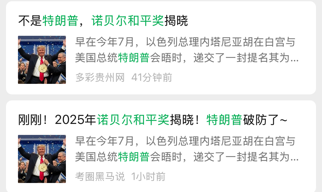 诺贝尔和平奖揭晓,得主不是特朗普媒体已经开启群嘲模式,挪威已瑟瑟发抖