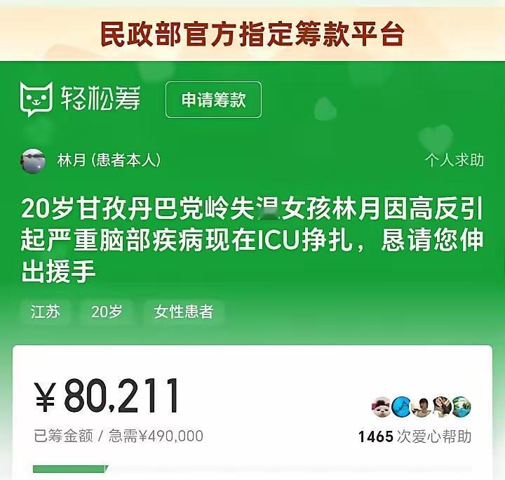 20岁女孩高原徒步失温, 获救后,人在昏迷尚未脱离生命危险。 女儿父母发视频上网筹善款, 部分网友献出爱心予以捐款, 还有一部分网友对其存在质疑, 有钱徒步,无钱治疗? 质疑家属,家里是否全力以赴。 网友存在这样的质疑很正常, 近些年来,朋友圈筹款信息众多, 渐渐的筹款被做成了生意! 有些家庭条件很好,依旧去筹款。 有个网友说:他的朋友母亲出了问题,他作为筹款发起人之一,积极帮其筹款,后期朋友母亲平安,没多久朋友就买了一辆新车,导致这位网友被很多捐款朋友质问。弄得他也无言以对。 这些年大家都被筹款弄怕了。