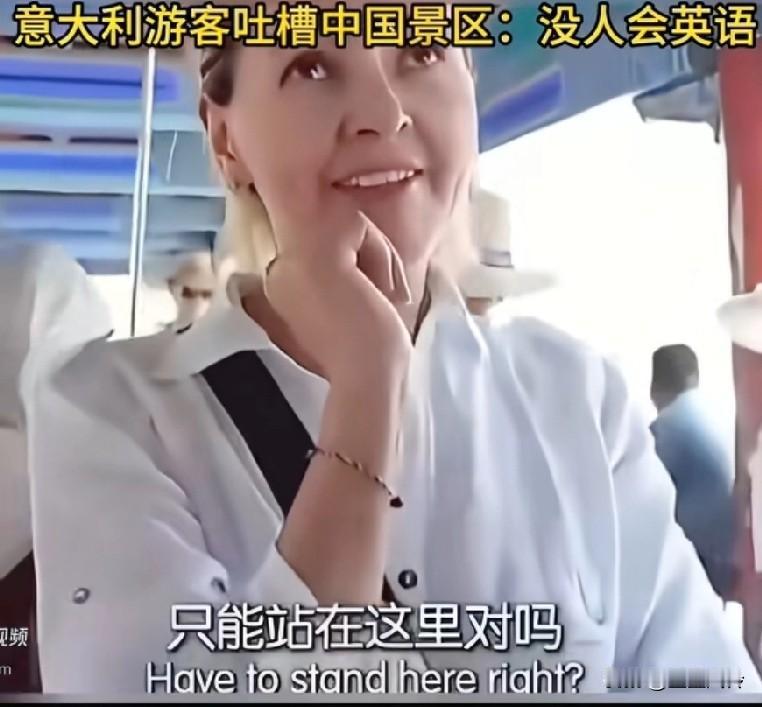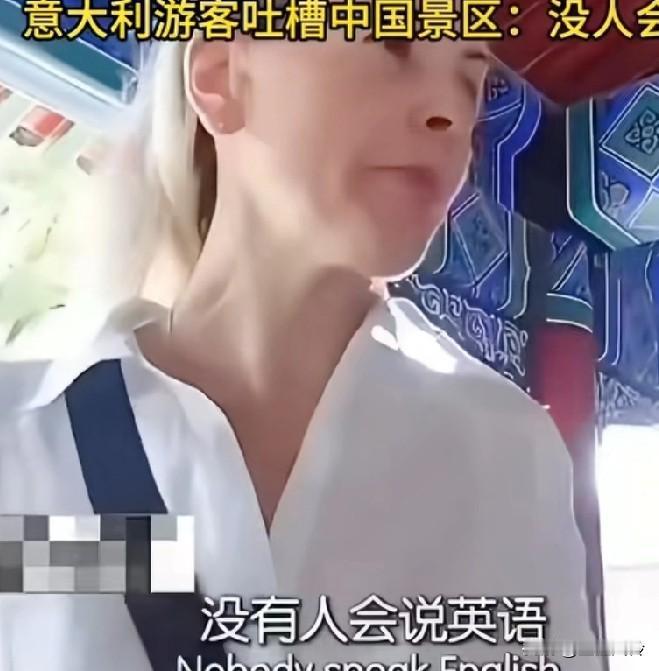 意大利美女吐槽中国景区: 没人会英语,向别人求助,没人能回答,我什么都做不了! 一般默认英语大家都会,比如意大利人来中国,也是希望中国人讲英语而不是意大利语。意大利人也不是全都会英语的,尤其是老一辈。但是还是很热情,记得是讲中文,他跟你讲意大利,两个居然都明白对方讲什么,而且他带着走了两条街找到了那个超市。 不过以后出国旅游,要学会用各种翻译软件啊,多大点事,买了翻译工具就可以了,多少有点落后了。