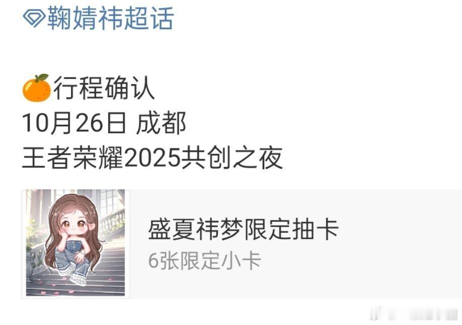 鞠婧祎 确认出席王者荣耀2025共创之夜 !!