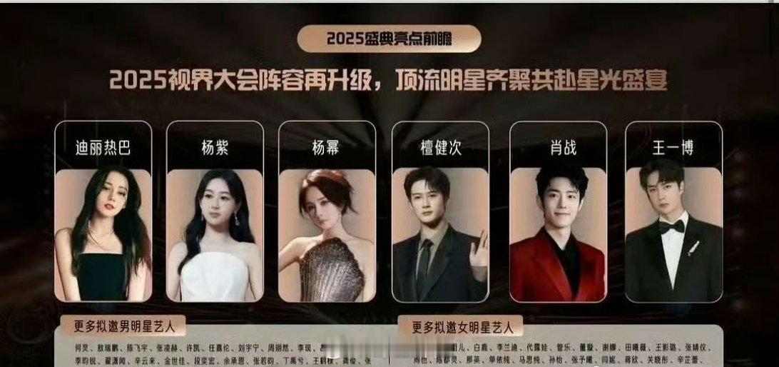 微博的2025视界大会阵容来了,迪丽热巴、杨紫、杨幂、檀健次、肖战、王一博等等,