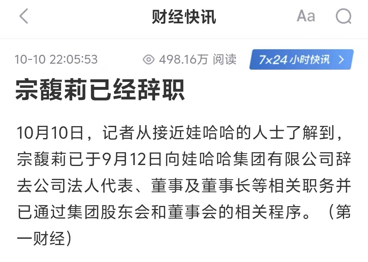 宗馥莉已经辞职我靠,一手好牌打的稀烂,就这么被踢出局了。